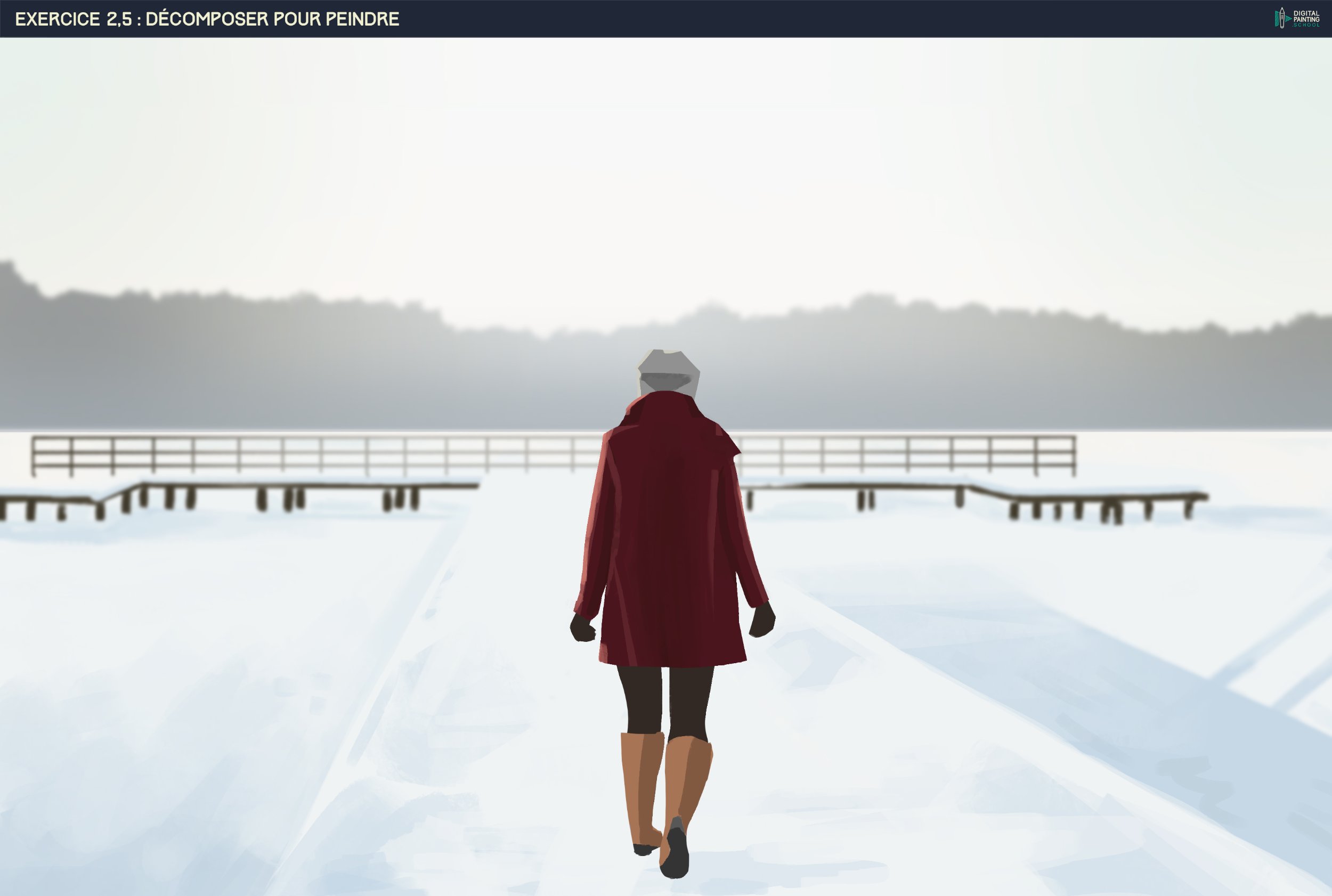 Salut! Voici l'exercice 2.5: pour cet exercice j'ai essayé de simplifier au mieux, j'ai peut-être trop simplifié? J'ai gardé le croquis, j'ai essayé sans, mais je suis vite revenu dessus de peur que le dp ne soit pas assez ressemblant avec la photo! Pour la couleur, j'ai parfois utilisé la pipette j'avoue! Et enfin j'ai mis 2h30 à peu près pour ce painting!1 point