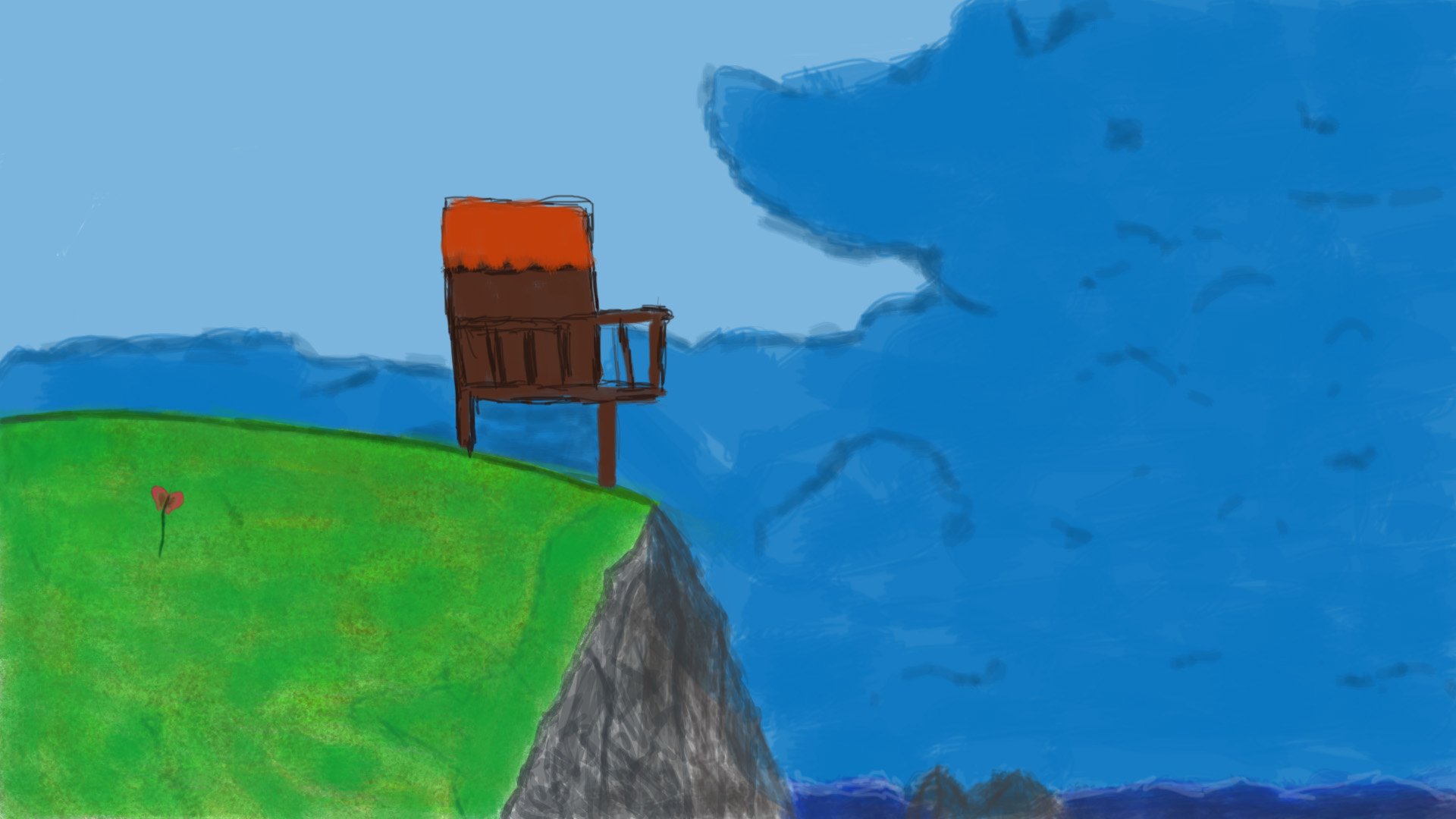 C'est super joli! J'aime vraiment beaucoup l'ensemble. Je trouve que c'est bien "organisé". Peut être ajouter un peu plus d'ombrage dans le ciel? L'eau rend pas mal mais je parie que en couleur ça peut déchirer! 🙂1 point