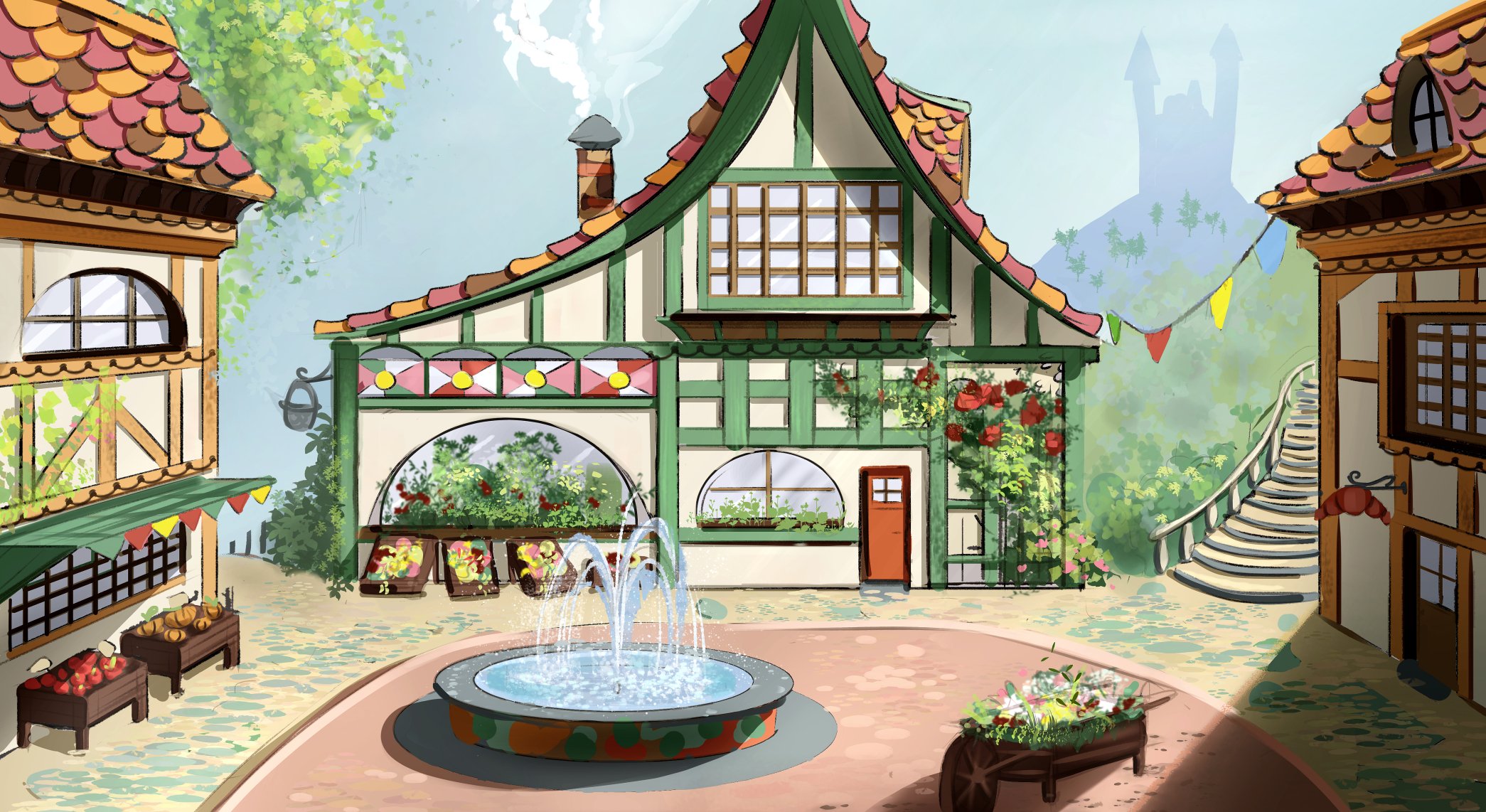 Coucou Partie 2 du programme, me voilà 😄 ! Alors pour ce DP de référence, (sans références olala 😰) j'ai mis pas mal de temps à me décider et j'ai un peu tourné en rond, mais je suis finalement partie sur une scène requérant de la perspective ainsi qu'une gestion de la lumière et des ombres, deux éléments me posant souvent problème. Et aussi de l'architecture tiens, vu que je n'en fait jamais ! J'ai regardé les vidéos youtube de Spartan sur la perspective en 2 ou 3 min, et j'en ai profité pour tester l'outil de perspective pour ne pas non plus m'arracher les cheveux 😆 Ce n'est pas la perspective la plus ambitieuse du monde mais à mon niveau, cela me suffit amplement. Je me suis ensuite beaucoup plus amusée une fois arrivée à l'étape de la couleur 😊. Je pourrais continuer d'affiner et de nettoyer l'image (je vois bien que le rendu est hétérogène et n'est pas top au niveau de la végétation car j'ai utilisé des customs brushes pour aller plus vite, idem pour le fond), mais mon cerveau a besoin de passer à autre chose. Et je pense que l'essentiel est là 🙂 Une chose est certaine, je ne pensais vraiment pas arriver à ce résultat sans utiliser de références. Cela m'a permis de réaliser que ma bibliothèque visuelle se remplissait petit à petit ? Au final, couper le cordon avec les réfs, c'est une expérience à faire ^^1 point