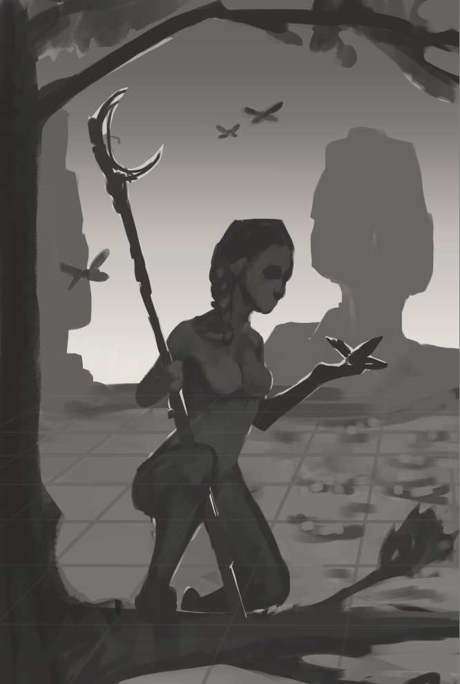 Merci ! Je suis d'accord pour l'ajout dans un dernier temps de petits trucs, même s'il ne faut pas que ça surcharge l'iimage. Bien vu pour les mandalas, j'y avais pas du tout pensé ! Après quelques recherches, et vu que j'ai un peu polish le rendu, j'ai peur qu'en ajoutant trop de détails ce soit encore moins visible. À ce compte-là, autant changer la forme du masque comme tu le soulignes (ajouter des ailerettes/houpettes etc). Je peux toujours modifier ça, même après la colo donc je garde ça en tête. Je pense rester sur du classique : valeurs + colo indirecte + modifs directes. C'est plus simple, d'autant plus qu'il n'y a pas 45couleurs différentes J'ai amélioré le rendu (même si pour l'instant je ne suis pas convaincue par la fumée/les nuages, faudrait que j les retravaille). Ça fait plus propre. Je pense passer à la colorisation indirecte assez vite, histoire de poser les premières couleurs.1 point