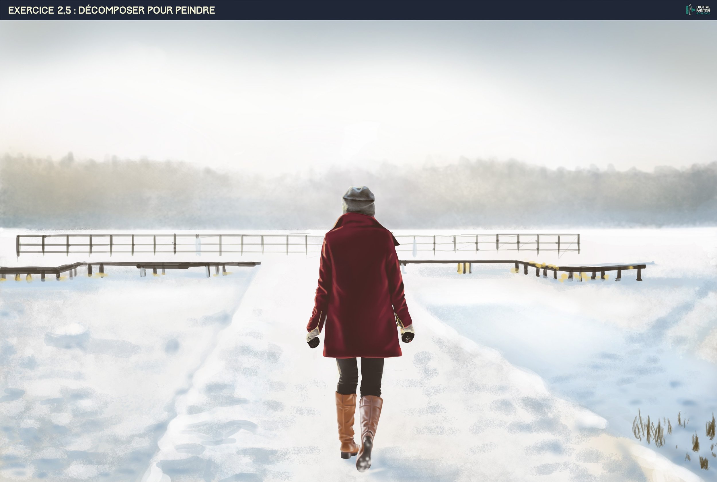 voici donc la suite l'exercice 2.5 ! Il m'a donné un peur bleue au début, je me suis demandé par quoi j'allais bien pouvoir commencé mais j'ai persévérer dessus je suis assez content de moi d'avoir été au bout et je me suis vachement étonné en le voyant fini ! Les gros problèmes que j'ai rencontré : - Après avoir mis mes couleurs de base je ne savais pas ce que je devais faire alors j'ai placer des "pâté" de couleur au endroit de lumière et d'ombre que j'ai ensuite affiné (je ne sais pas si je m'y suis bien pris car j'ai bloquer pendant longtemps après (j'ai du regarder 3 fois la vidéo pour me "débloquer" - la lumière du fond j'ai fais un test mais je ne trouve pas ça très propre j'aimerai savoir comment rendre ce halo de lumière devant la personne plus "impactant" comme sur la photo - j'ai énormément travailler avec le brush soft peut être un peu trop je pense (aie) un petit conseil pour les personne qui débutent comme moi : La vue de cet image m'a vraiment fais peur je n'osais pas me lancé, par la même occasion, j'ai été plusieurs fois décourager mais c'est "ALLEZ AU BOUT" " NE LÂCHER RIEN" Osez ! Vous ne le regretterez pas vous serez même content de vous à la fin ! Sur ce je pars entâmer le 3e exercice ! un belle journée à tout le monde et merci d'avance pour vos retours ! 🙂1 point