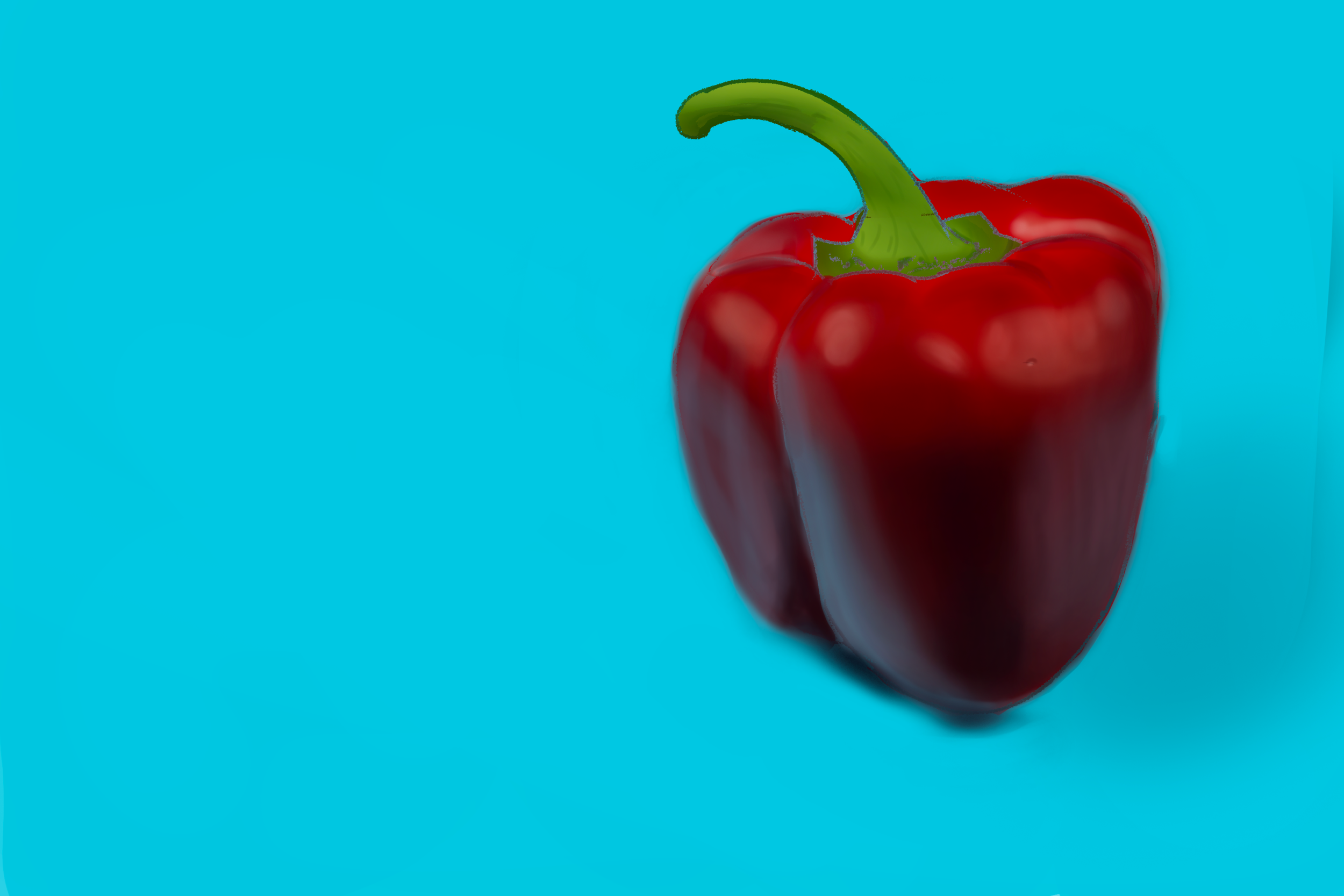 Salutsalut! voilà le résultat de mes exercices, j'ai retravaillé le poivron et la fleur et tenté la tasse. Pour le poivron j'ai utilisé un filtre de "flou" pour adoucir les bords, puis j'ai essayé de rajouter un peu plus de texture. Même principe pour la fleur, j'ai retravaillé les valeurs puis joué un peu plus sur la dureté de mon brush.1 point