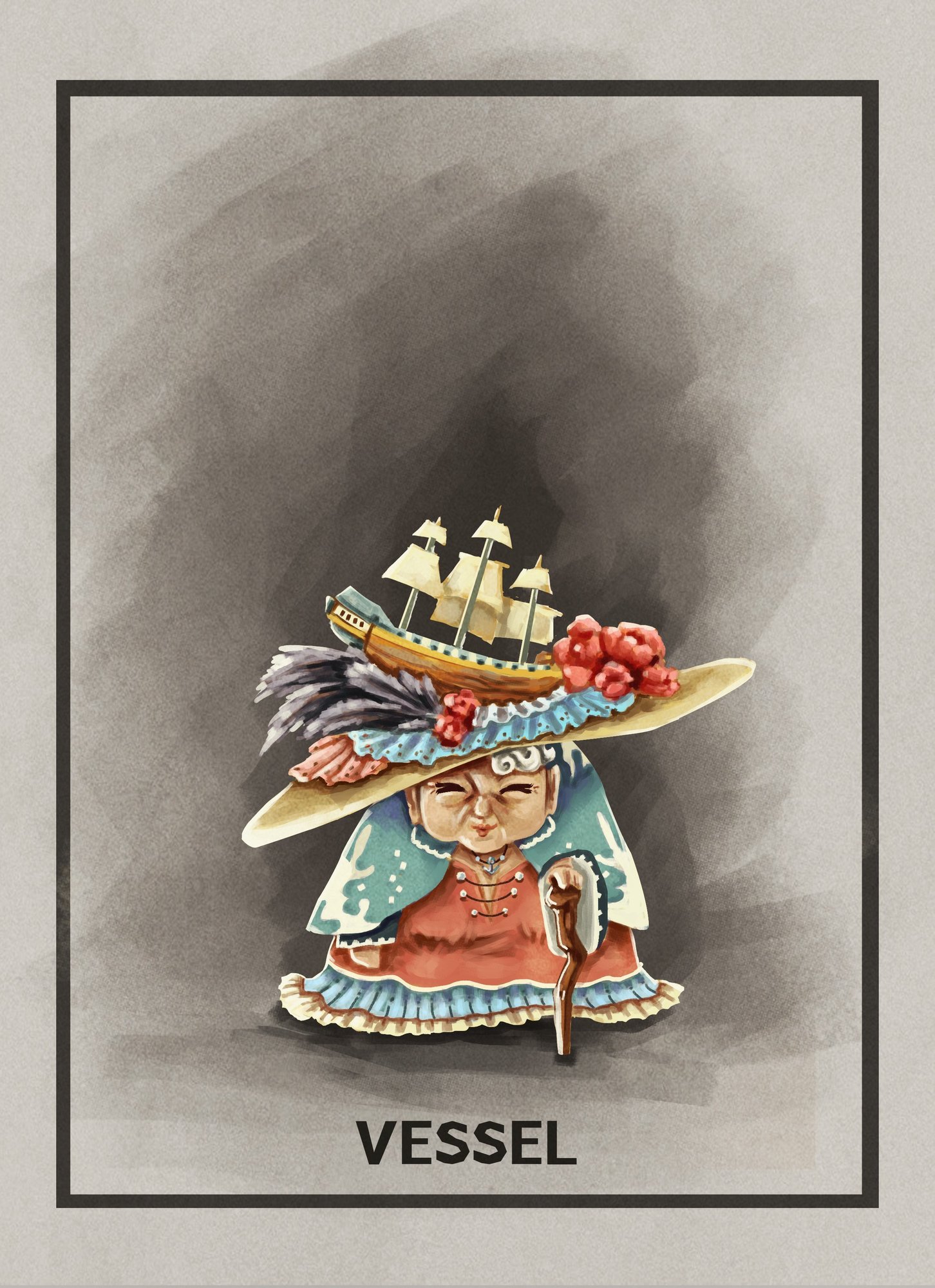 @Nogg Intéressant le design 🙂 Tu peux tester un léger gradient en produit sur le tout bas du perso pour donner un peu plus d'attention sur le haut @Adelfaust En vrai tu as un récipient dans ton image donc techniquement ça marche - j'aime bien ton line, il est bien propre @ArkticC'est chouette, ptêtre mettre de la persp atmosphérique sur ceux de l'arrière pour les remettre dans l'espace ? REP PLUS TARDIVE : merci pour vos retours 🙂 Bon ben j'avais compris Vessel = récipient/Graal/baignoire/bocal à anchois, ce genre de choses, du coup un retake sur Charon le nocher qui transporte les morts à la louche ou en fait une soupe dans un arbre parce que pq pas :10 points
