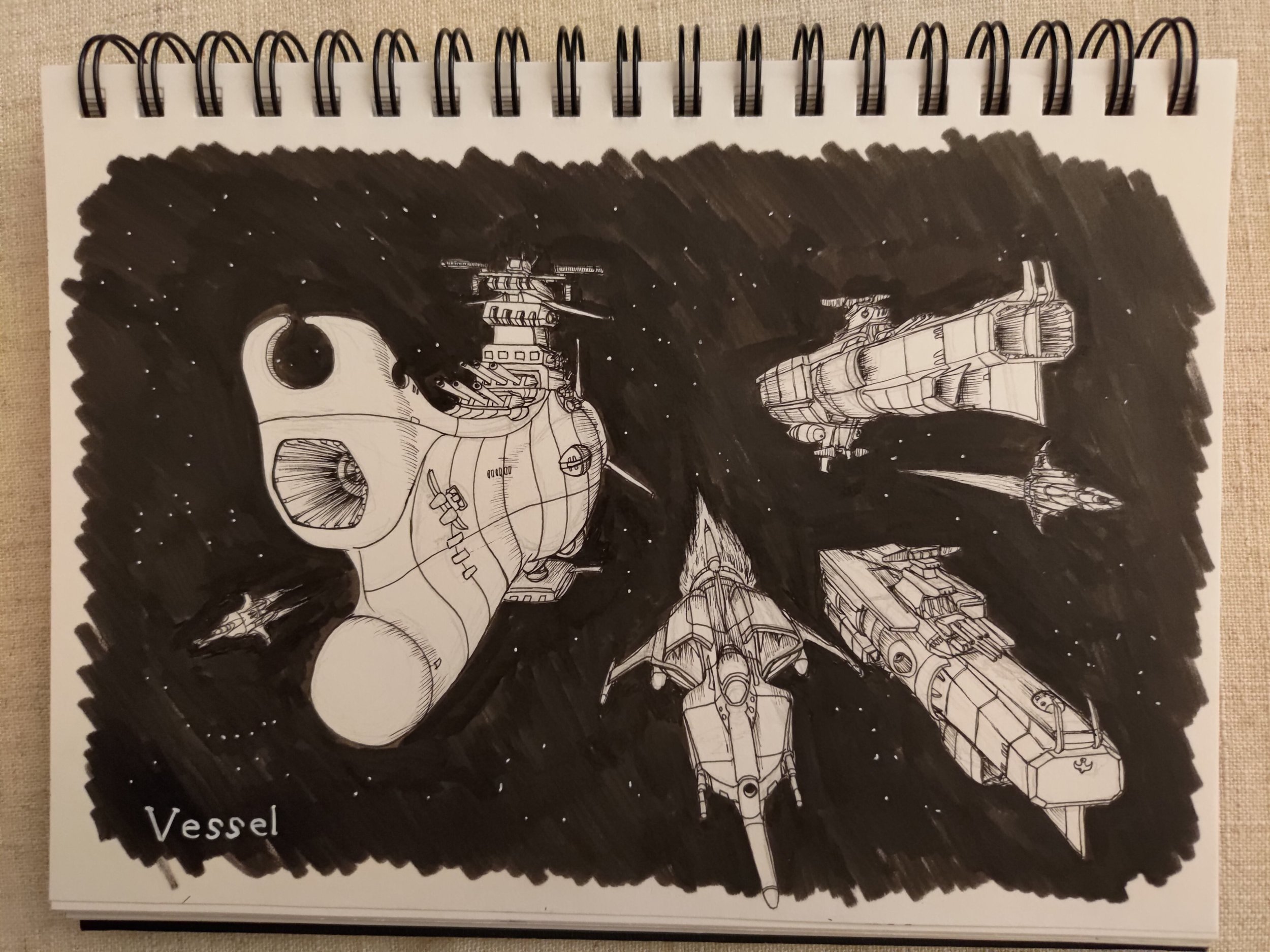 @Lucius Juste génial ta façon de tracé me ravie les yeux à chacun de tes dessin... @Haeresis Wow, je suis assez admirative de ta perspective... Je ne me suis pas encore lancer dans ce genre de chose même en tradi'. Je trouve le tout super réussi et il y a comme un effet de vitesse... Bravo! Voici mon vaisseau et je profites aussi du fait que j'ai finit de remplir ma page pour vous montrez la globalité des 3 premiers mots de l'inktober. 😉11 points