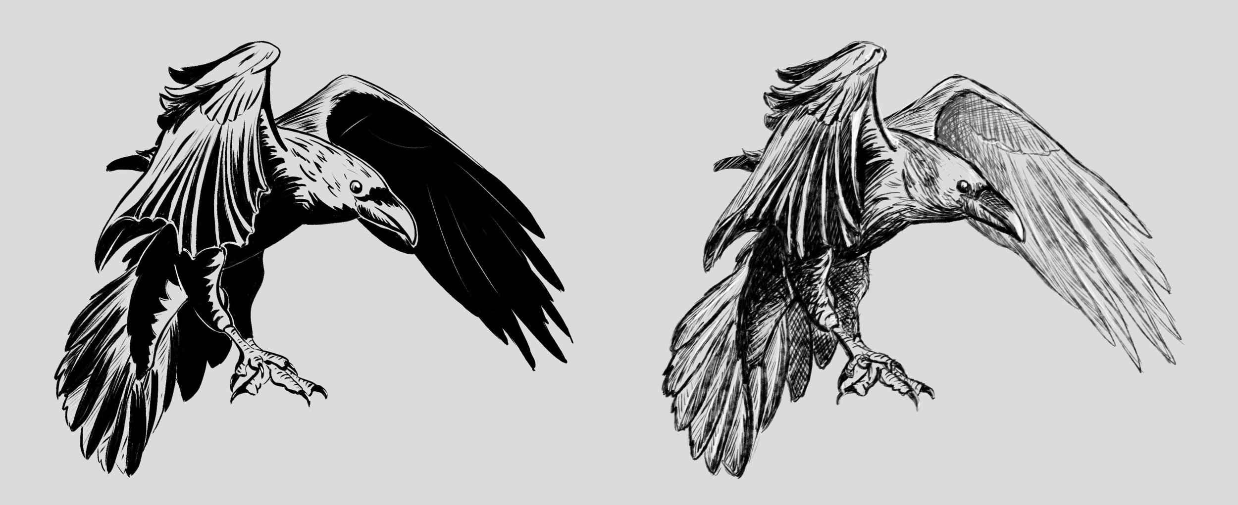 @missfree sympa ton corbeau ! Peut-être juste accentuer plus les lines à l'intérieur du corps pour séparer mieux les volumes... @ArkticL'idée est cool, hâte de voir ce que ça va donner à la fin ! @GustavImagesbravo, il est bien réussi ton corbeau ! De mon côté pas d'idée bien particulière pour ce thème, du coup j'ai juste fait une étude pour travailler un peu l'encrage...6 points