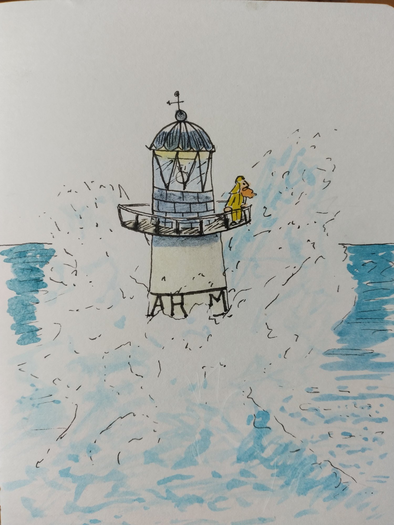 Hello @Lykkeligl’ambiance et les vagues qui déferlent sont bien rendues. Je ne connais pas les phares de l’enfer @poltubonne idée les soeurs siamoises. On dirait que tu maitiens un style commun sur tous les jours, crayonné avant un fond bien coloré @Adrac’est sympa, je sais pas si ça fait référence à un manga ? Moi j’ai pensé au sens figuratif avec des gens bloqués sur leurs portables, du coup j’ai découvert qu’il y a un nom pour ça : les Smombies5 points