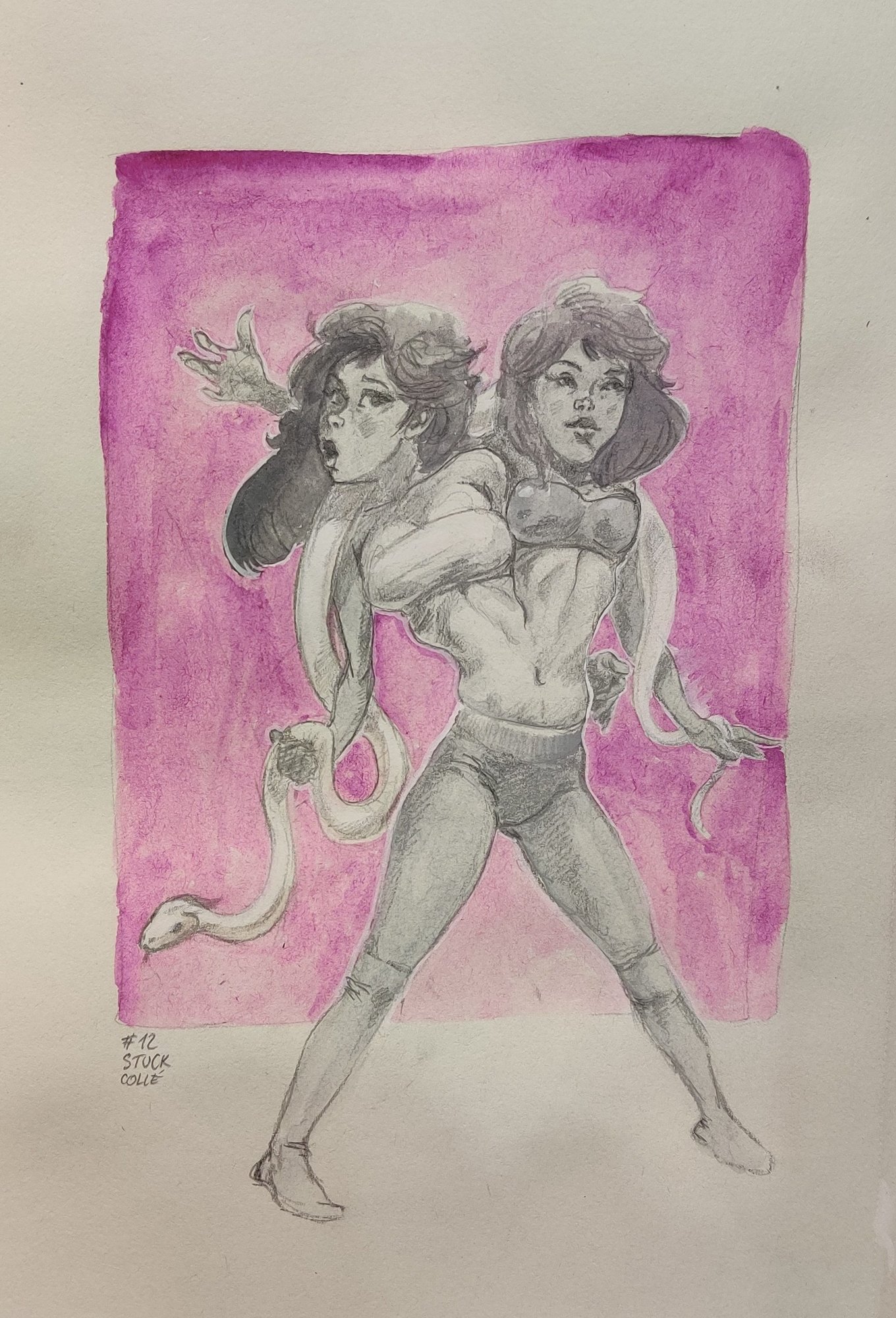 Bonsoir tous le monde ! Difficile de garder le rythme avec le boulot ^^'. @Nogg Belle représentation de ce que pourrait être une déesse mère ^^. @Gloubibarjo Discrète la souris mais efficace le fondu du fromage 😄 @alkecesa Malgré le temps limité, tu as fait un sacré boulot pour ce thème. Quelle type de peinture tu as utilisé pour la chevelure dorée ? Voici ma participation. J'ai essayé de prendre les deux thèmes en même temps, même si c'est le côté coincé qui domine ^^.6 points