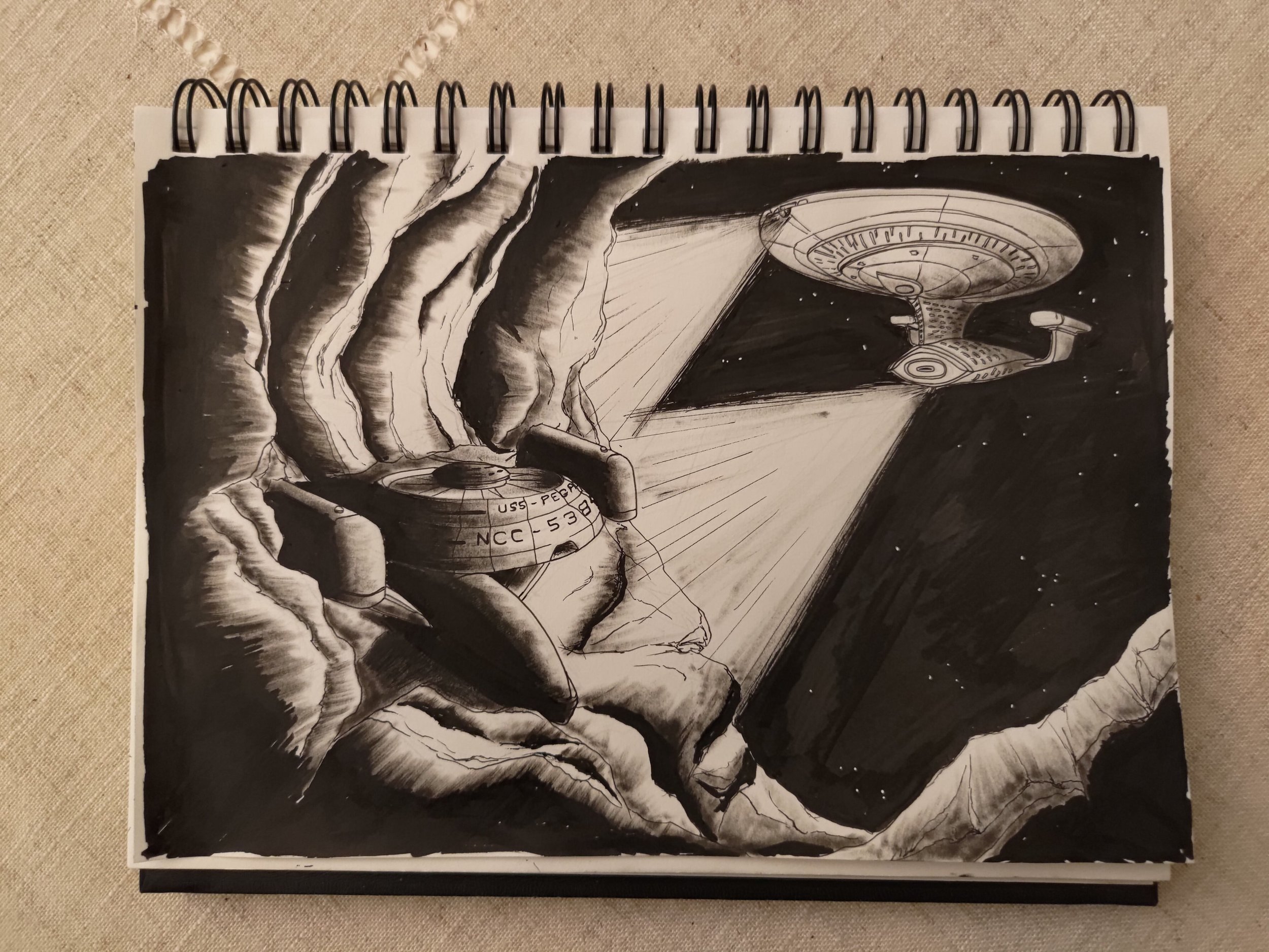 @pandoha ha nostalgie. Tu t'es bien cassé la tête pour le Millenium Condor, euh...le Faucon Millenium euh...bref...bien joué lol @mako hé hé ''à grand pouvoir, grand problème'' lol bien géré les fils👍 @poltu @stefou yes bien vu. J'ai un peu délaissé le décor...😬 J'aurai pu tester d'éloigner la montagne ou de mieux gérer la distance avec des épaisseurs de traits décroissantes... @stefoutu maîtrises ton style aussi bien pour le sérieux que pour l'humour c'est top👍 @gohlgrinmdécidément on a trouvé la mascotte de cet inktober🙃. C'est vrai qu'il y a un côté Prometheus. Ça aurait pu le faire mais j'avais déjà fait un Alien dans ma série. @ndreamcool cette boîte de sardine. On y trouve des choses très alléchantes😆. Merci, c'est gentil. Les distances sont difficiles à rendre sans utiliser de gris lol2 points