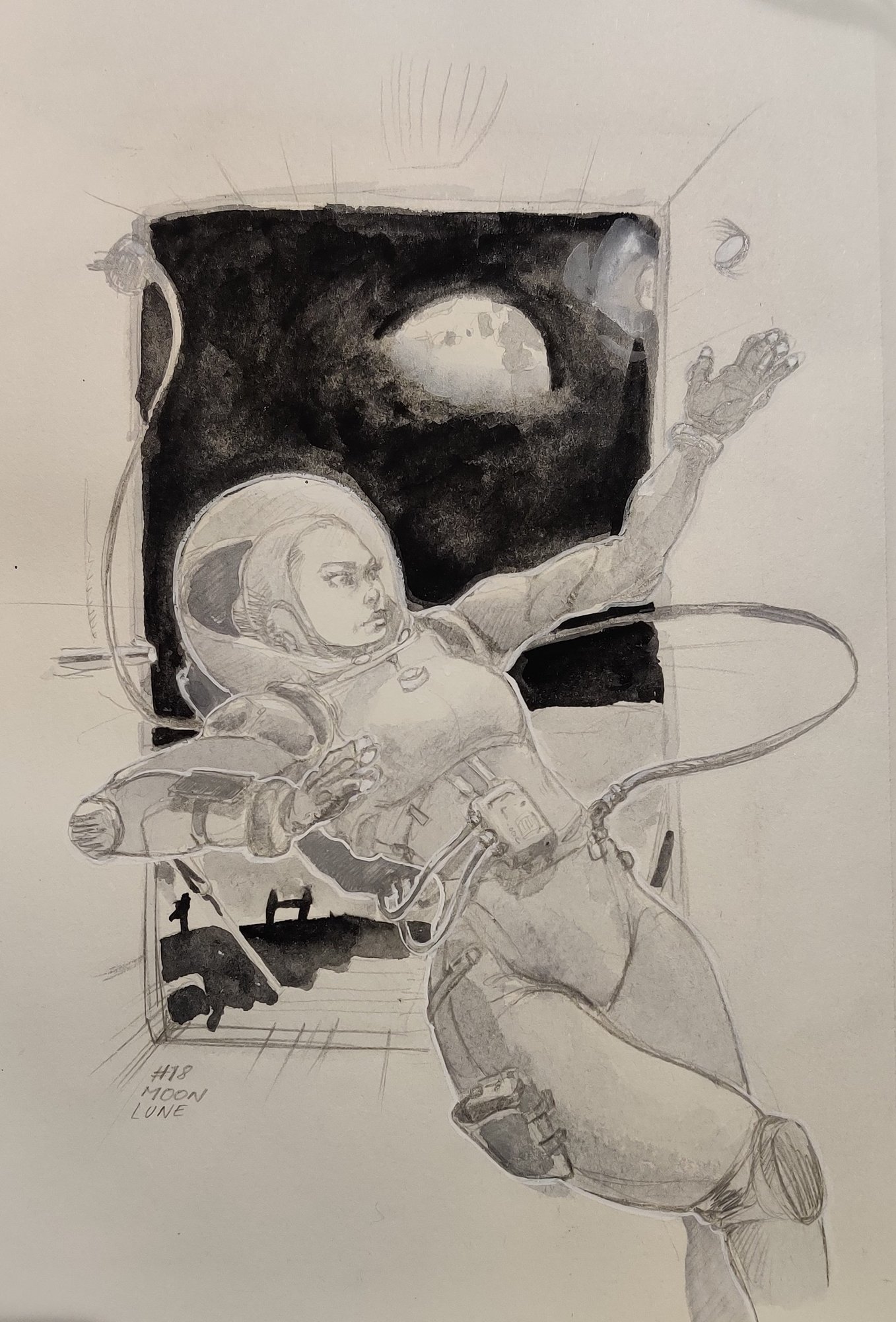 Je me suis complètement laissé emporté avec celui ci, on est loin de la jolie line propre donc je ne sais pas si je me suis éloigné du but de l'exercice mais j'aime bien le résultat final. J'ai tout de même tenté d'appuyer mon trait là ou il y a les zones d'ombres, je ne sais pas si l'effet est au rendez vous néanmoins 🙈2 points