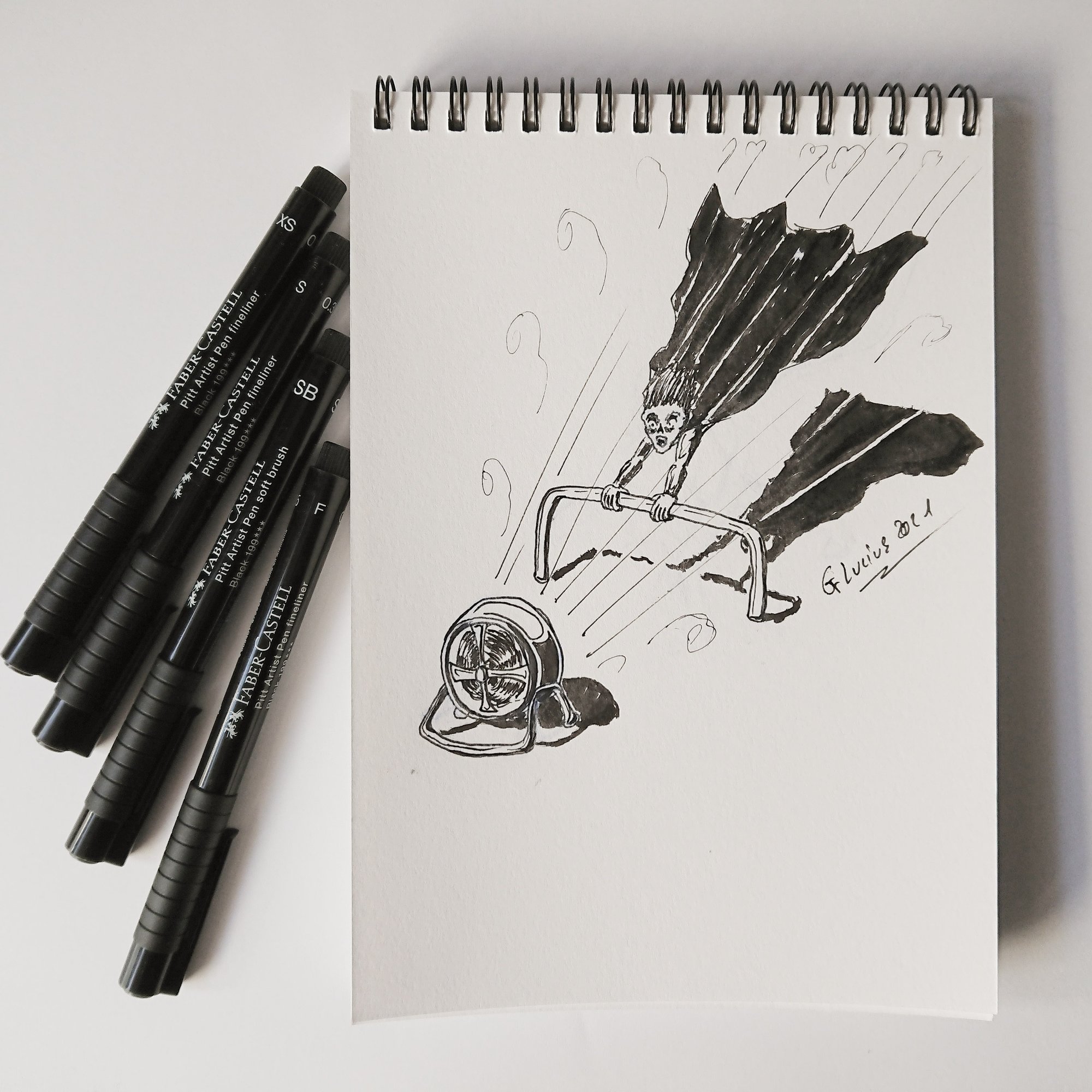Je me suis complètement laissé emporté avec celui ci, on est loin de la jolie line propre donc je ne sais pas si je me suis éloigné du but de l'exercice mais j'aime bien le résultat final. J'ai tout de même tenté d'appuyer mon trait là ou il y a les zones d'ombres, je ne sais pas si l'effet est au rendez vous néanmoins 🙈2 points