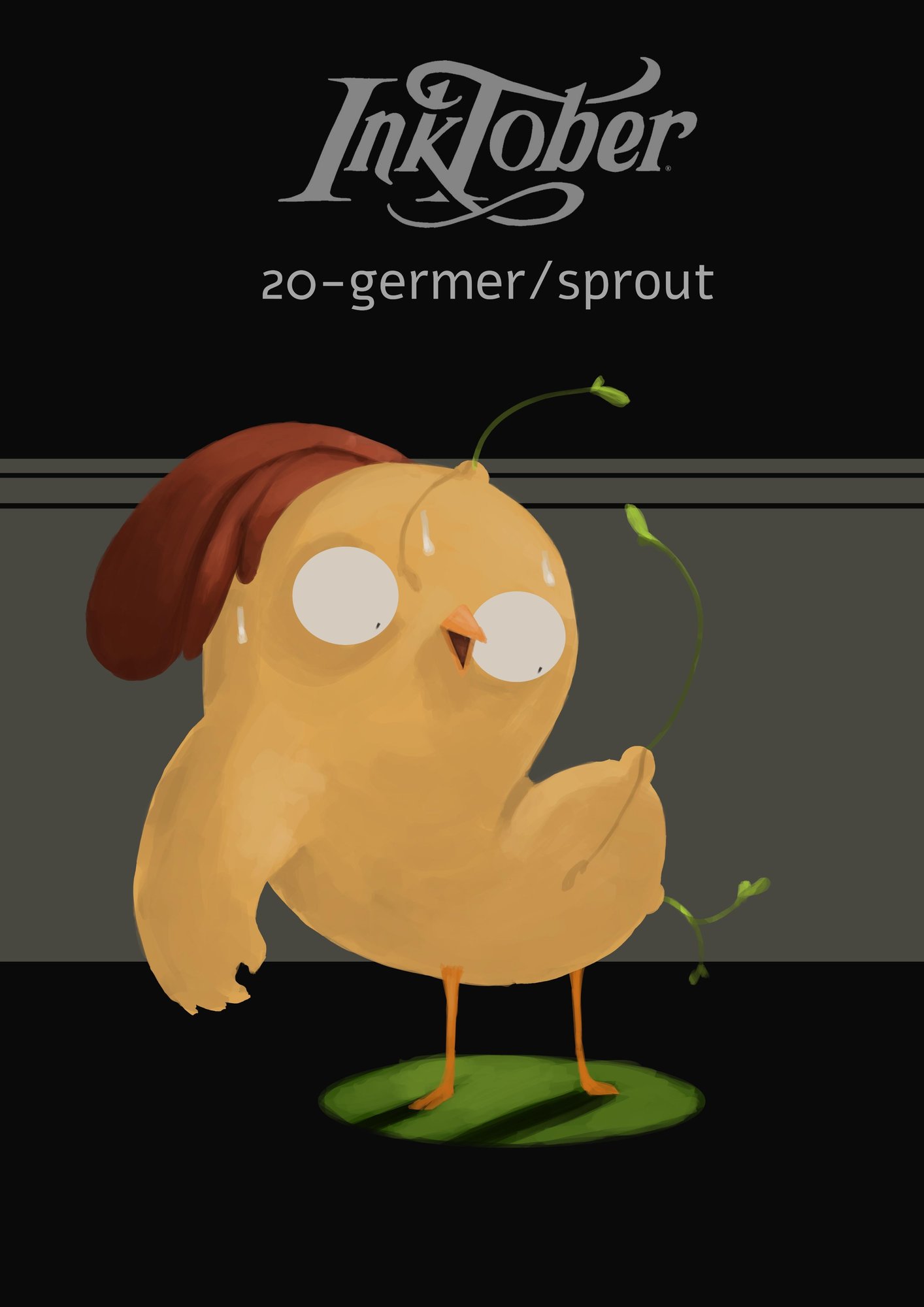 @poltuTon perso est top! @gohlgrinmTon piou piou devient ado on dirait 😁 @ndreamBelle idée, dommage tes plantes semblent rajoutées sans faire partie du même univers que le reste (je sais pas si je me fais comprendre...)Sinon belle harmonie de teintes @SKARROn imagine bien la danse de ton Groot ! @alkecesaTrès poétique,l'encre or apporte un plus. @pandobonne idée pour l'idée 😋 Moi je suis parti sur l'idée de plante et d'espoir18 points