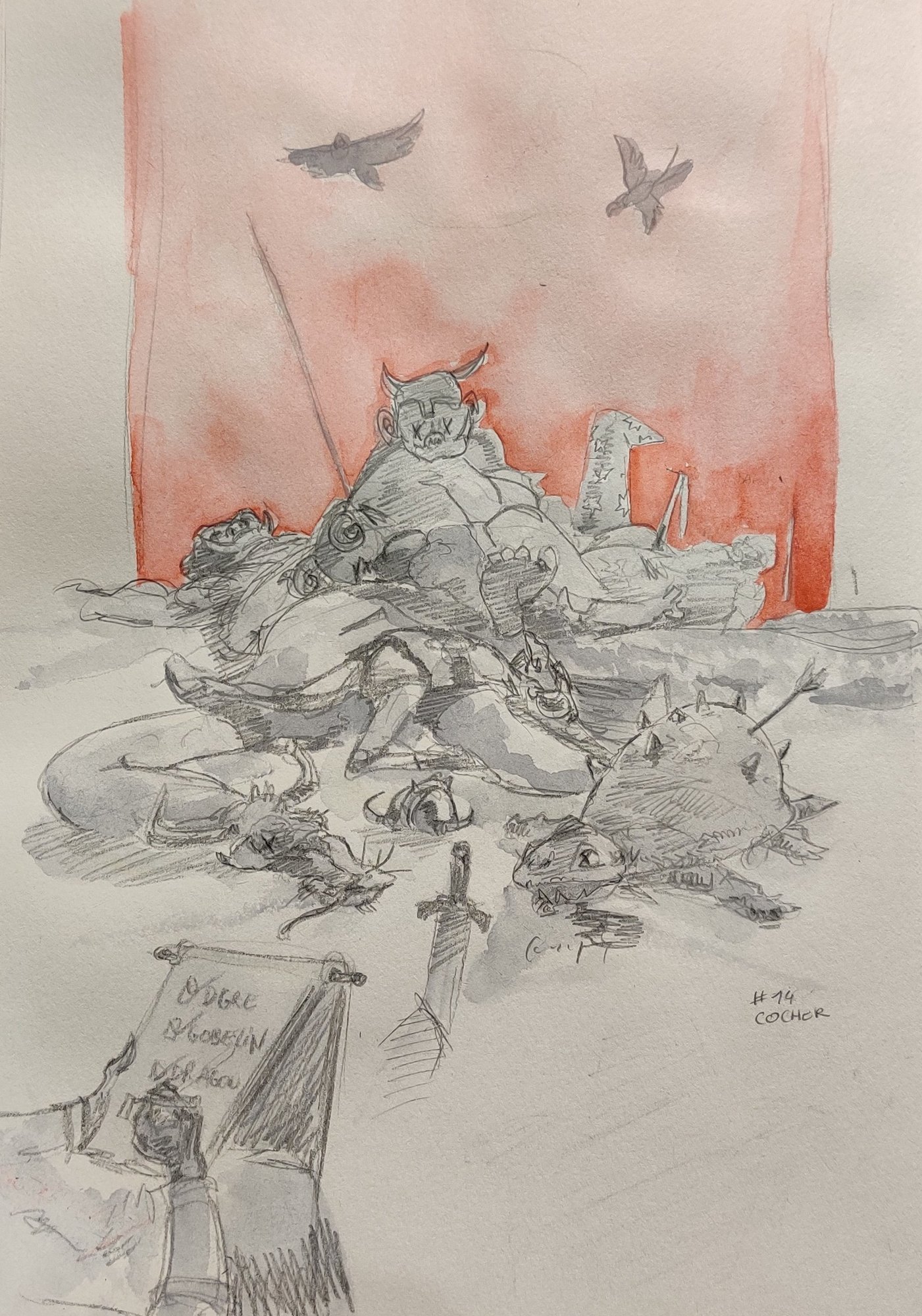 @gohlgrinmsympa le flow et l'éclairage. Il a un coté Magneto comme ça Piou piou lol @ndreamJ'aime beaucoup le grain que t'as sur ton illu! ça me fait penser à Walking Dead lol Ses jambes me paraissent un peu petites non? Une petite bestiole pour moi. Jme suis bien galéré pour celui-là. Surement les neurones qui fument et que j'ai plus d'avance. Stresssss lol Donc, n'hésitez pas à dire ce qui va pas ou pourrait être améliorer! P.S. @poltuhey j'ai trouvé ce qui n'allait pas pour le bras de S.Jackson en fait...j'avais pas fini l'arrière du flingue, du coup il manquait un bout sur le bras et donc un bras chelou. J'l'ai corrigé dans ma galerie. Tu me diras si j'ai bon ^^15 points