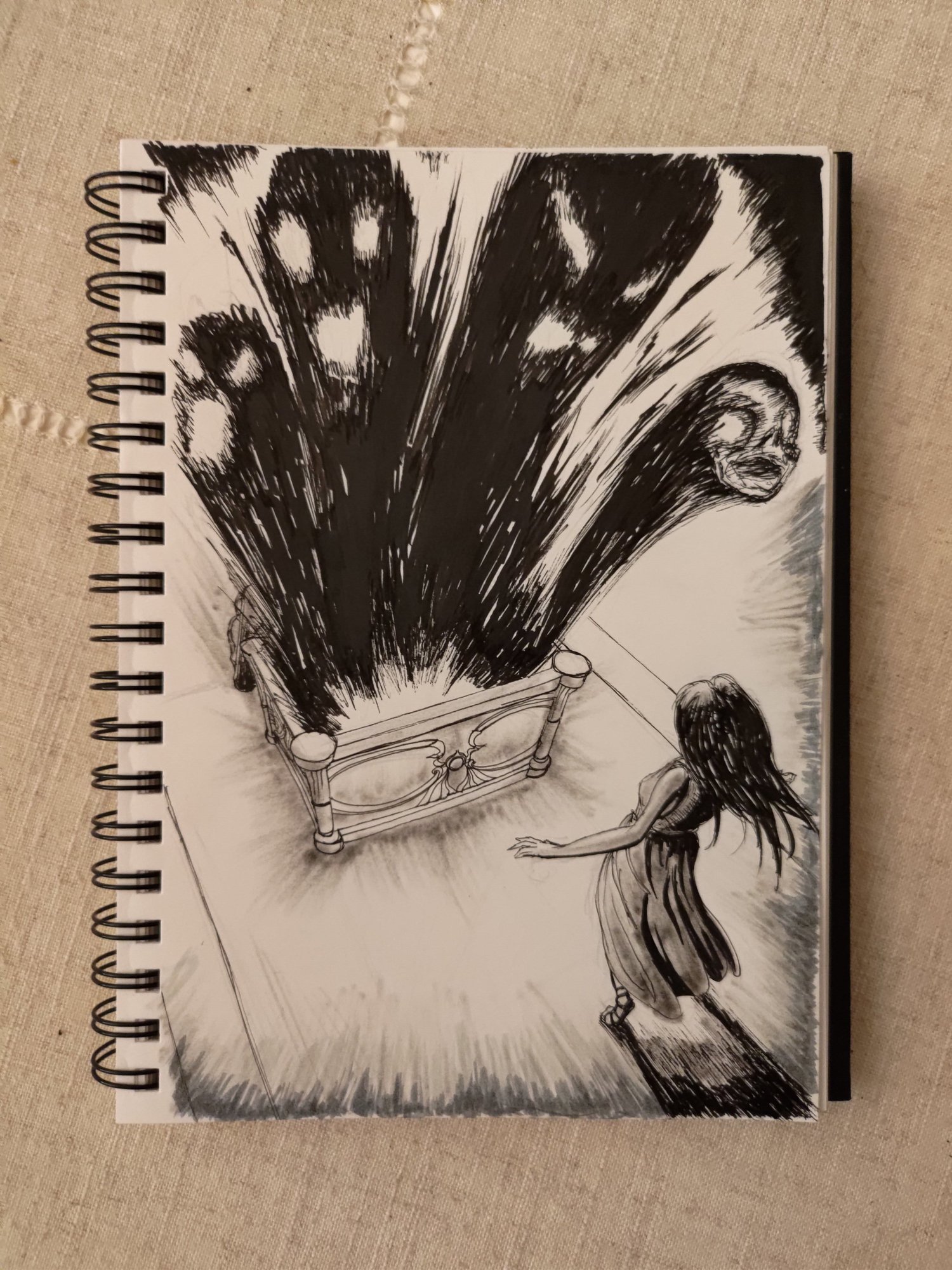 Bonsoir!! @gohlgrinm benis soient les fêlés car ils laissent passer la lumière, version piou piou! @missfree (pas si ) simple, efficace! @mako ça c'est de l'ouverture! @SKARR creepy à souhait! Week end et accessoirement vacances! Je pars dans quelques jours mais j'emporterai mes encres et mon carnet avec moi histoire de finir Inktober (c'est la raison principale pour mon choix de le faire à l'encre et non digitalement) Voici ma ptite proposition du jour:10 points