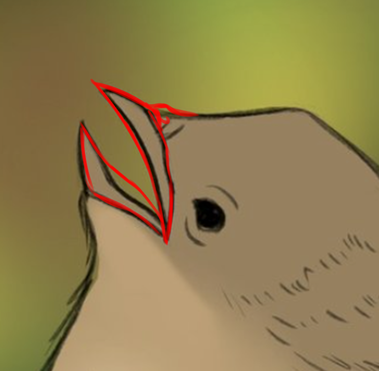 Salut @naykomen69, Sympa ton portrait de jinx! Je croquis qu'on est beaucoup à avoir adoré la série! ^^ Je trouve que le côté "anguleux" que tu as avec ta line correspond assez bien au style de la série, ce qui donne un rendu vraiment cool. 👌 Je n'ai pas le réf sous les yeux mais il y aurait peut-être la zone trapèze/épaule qui me semble un peu décalée mais à voir. Par rapport aux oisillons, les pattes donnent cette impression car elles sont relativement fines et petites par rapport à la référence : N'hésites pas du coup à les agrandir un peu 👍 Sinon, par rapport au bec, c'est mieux mais je t'invites tout de même à le reprendre en analysant bien la structure de celui et la manière dont il est formé : Notamment les différentes parties "séparées" qui le composent (insertion de la partie haut du bec, la partie basse, le "nez", etc..) Attention également à certaines contre-courbes sur l'autre bec : Bonne continuation! 😉1 point