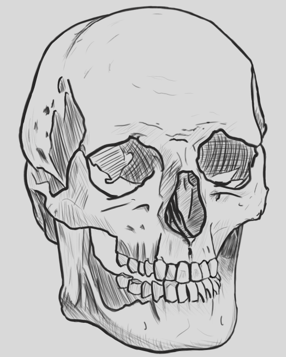 Salut @Toriko et bonne année à toi ! 😉 Ton croquis d'Hubble est dans l'ensemble plutôt pas mal mais tu as par contre un soucis au niveau des ellipses qui forment le corps du Hubble sur toute sa longueur. A mesure qu'on "recule" dans l'espace (l'espace 3D) les arrondis des tes ellipses devraient s'accentuer. Or, c'est le contraire qui se passe dans ta version ici : J'ai corriger grossièrement l'arrondi de tes ellipses pour te donner une idée plus claire 👍 Pour ton croquis de l'épée, attention surtout à la partie droite du pommeau qui est un peu trop excentrée. Pour le crâne, ton rendu global est plutôt pas mal mais tes proportions globales sont assez éloignées de la référence (surtout au niveau des dents ou de la cavité nasale). N'hésites pas à reprendre ces zones quitte à t'aider de la référence en superposant de temps en temps pour plus facilement identifier tes erreurs ou en utilisant les outils de règles de photoshop pour vérifier tes proportions 👍 Bonne continuation!1 point