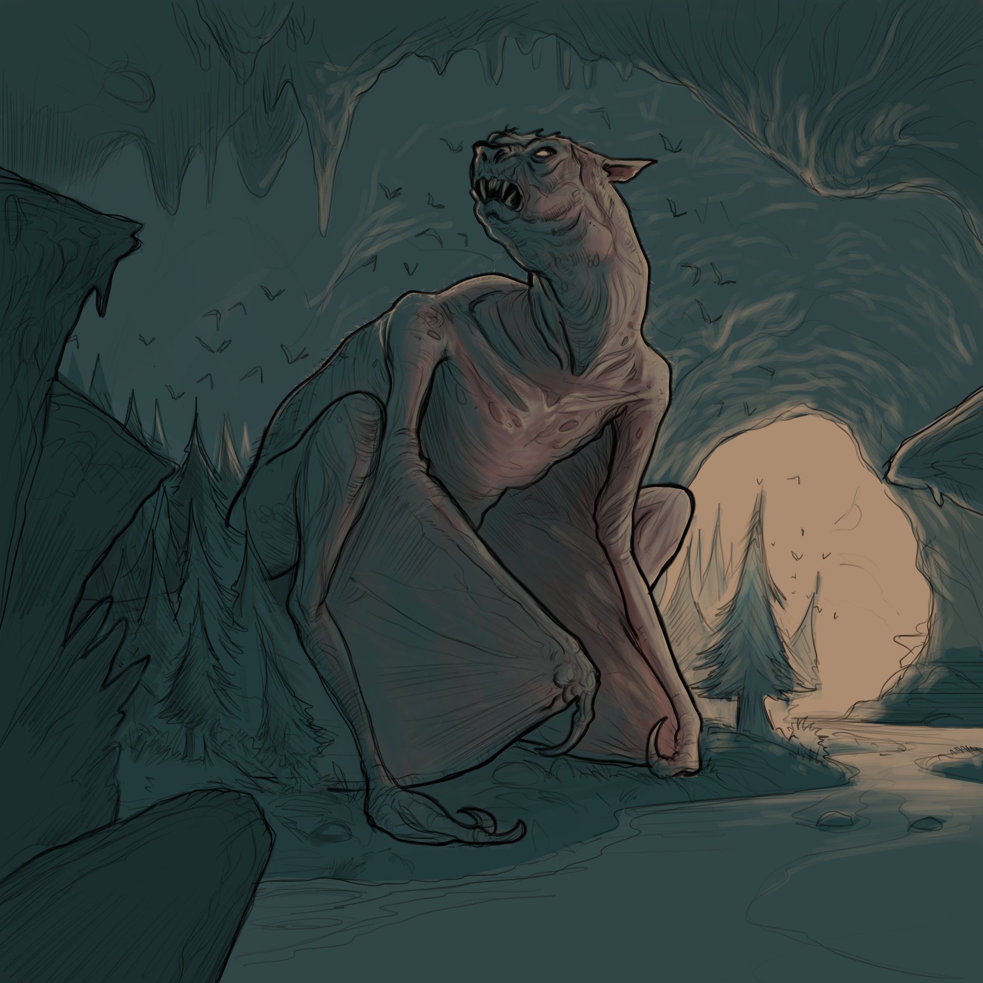 @zouoli Très mignon, en tout cas ! Me sans les ombres, c'est bien. @EnceladeCe prend pas mal de temps de faire le croquis, c'est plus facile d'y aller par masses, pour un speed painting, je pense. Ca manque un peu de tons sombres dans les ombres, mais c'est sympa. @requinperplexeIl y a des problèmes de perspective, mais comme tout est sens dessus-dessous, ça passe ! 1 h pour le mien, sans compter la recherche de refs. Je ne me suis pas embếtée à faire un monstre, mais je pense que l'évoquer suffit.6 points