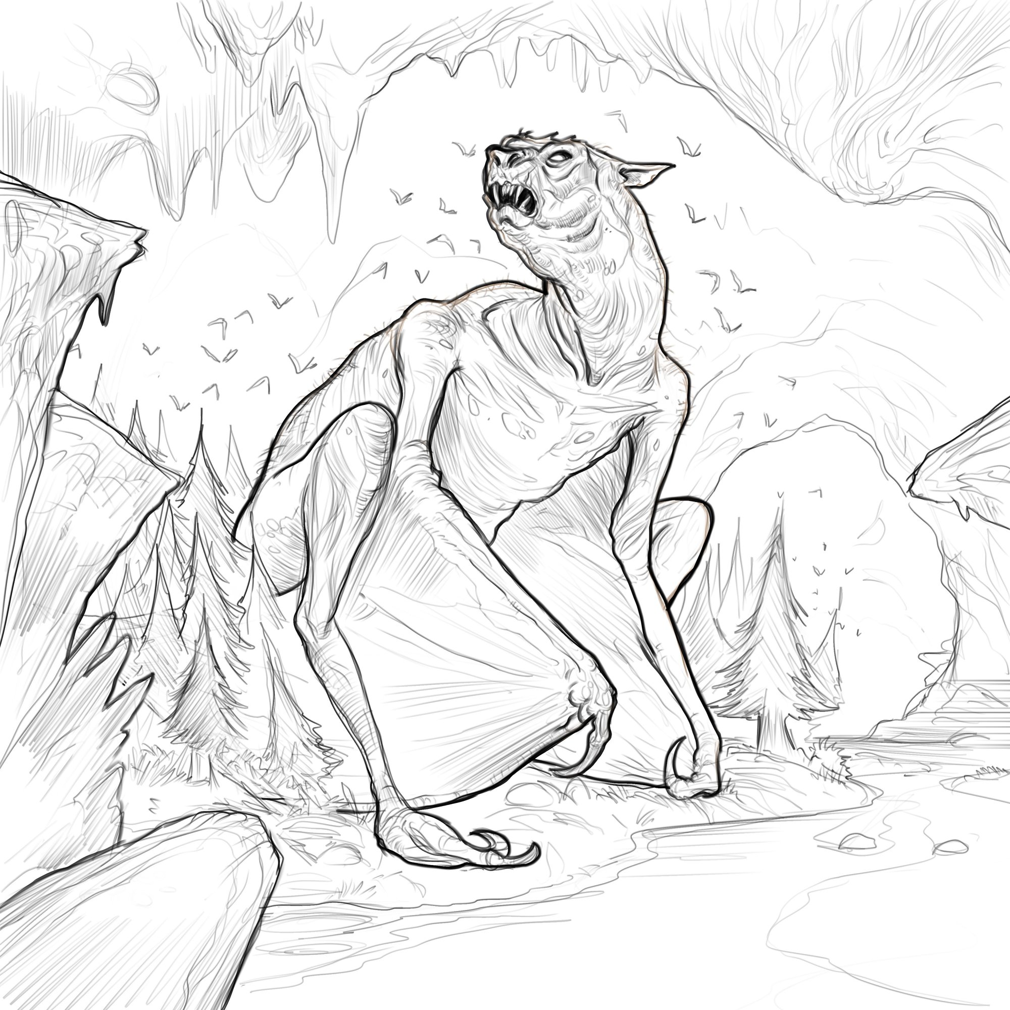 Salut J'ai eu un peu de mal à comprendre la forme du bas du corps de ton monstre. Et comme @cyrille, j'ai cherché à voir des membres implantés sur un corps, comme les épaules, d'ou les Y qu'il propose. pareil pour les pates arrières, j'ai imaginé une sorte de bassin pour entrevoir la rotation nécessaire. Comme pour les épaules de Cyrille, j'ai marqué la cuisse, mais j'ai bien compris aussi que tu voulais un corps sans doute moins structuré et peut-être plus glups, ou blob, enfin, bref, plus mou ? Pour le fun, sans être complètement satisfait et aussi sans savoir l'image finale que tu as en tête, je me suis livré à l'exercice et te livre le résultat très largement perfectible. J'ai essayé de marqué la rotation par des plis de peau subissant la rotation et par les jeux d'ombres en renforçant certaines. a+1 point