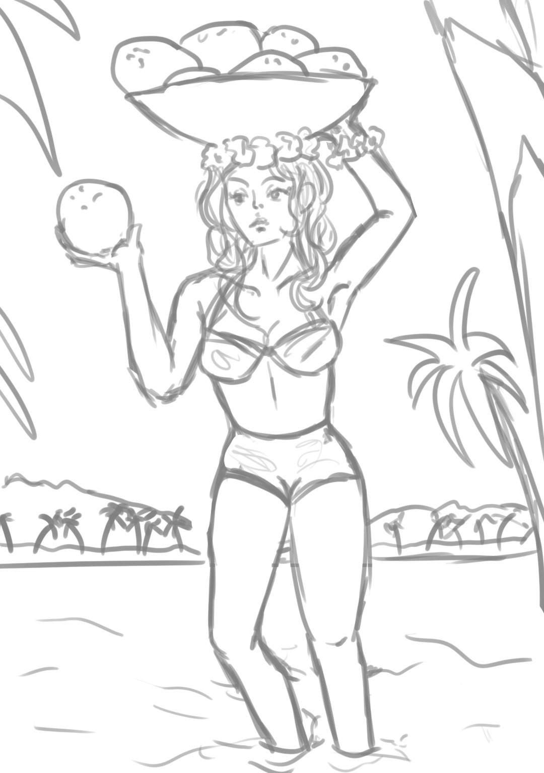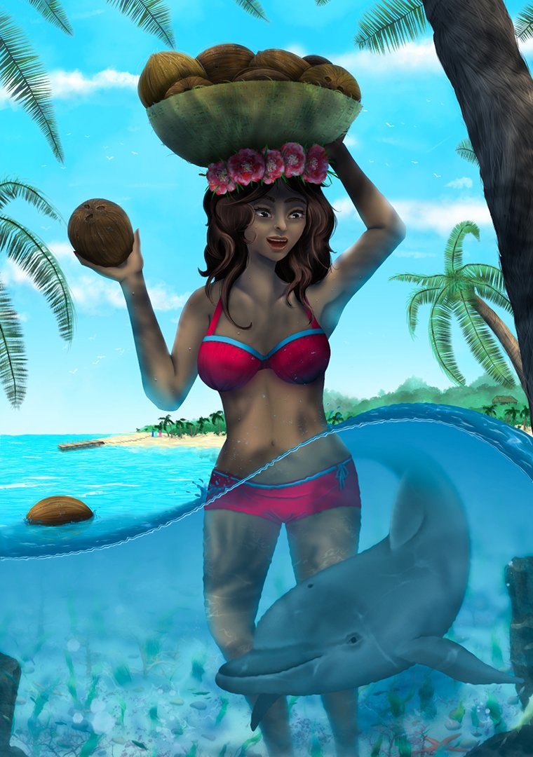 Bonjour partie 3 !!! Enfin me voilà ! 😁 J'ai eu du mal à me décider pour mon avant, j'ai recup un croquis que j'avais commencé y a un moment car ce dessin regroupait pas mal de sujets qui m'énervent à dessiner : Donc voilà mon painting de départ (l'upload a d'ailleurs pété un peu la qualité 😭) : Ce qui me pose problème dessus : L'anatomie toujours (mais ça j'y travaille avec des livres et références (là j'ai fait sans)), c'est une histoire de pratique ! L'eau, je rêve de cette belle eau bleue paradisiaque mais n'arrive jamais à obtenir le rendu que je veux... 🌊 la végétation, les troncs d'arbres ça va encore mais dès qu'il s'agit des feuilles c'est la cata, surtout les forêts lointaines, j'ai l'impression de faire des pâtés verts 🌲🌿 C'est déjà pas mal ! Du coup je fonce sur le chapitre 1 ! 💪1 point