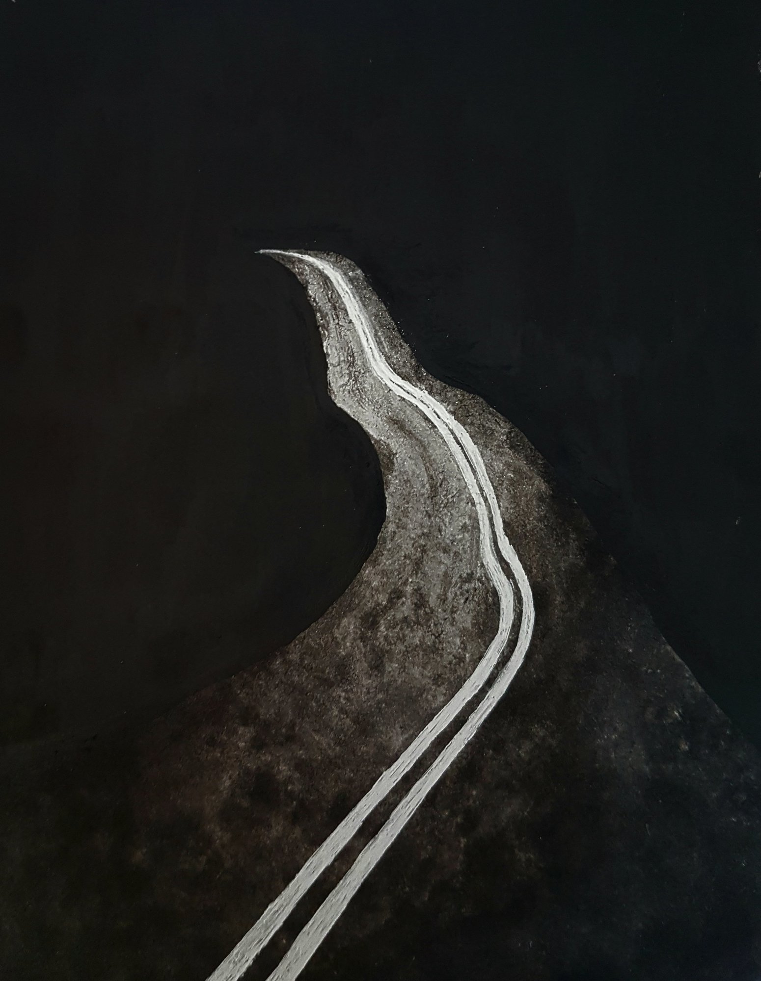 Bon... j'arrivais pas à me fixer sur une idée, puis j'ai eu envie de partir sur un truc plus graphique / semi-abstrait et j'ai trouvé cette magnifique photo de Gabriel Guerrero Caroca et ça m'a donné envie d'essayer d'appliquer l'encre avec une éponge. Bref, résultat moyennement satisfaisant mais les plaisirs du tradi étaient au rendez-vous (càd : chipoter, en foutre partout, avoir les mains sales, faire gondoler du papier... enfin, vous voyez ^^)12 points