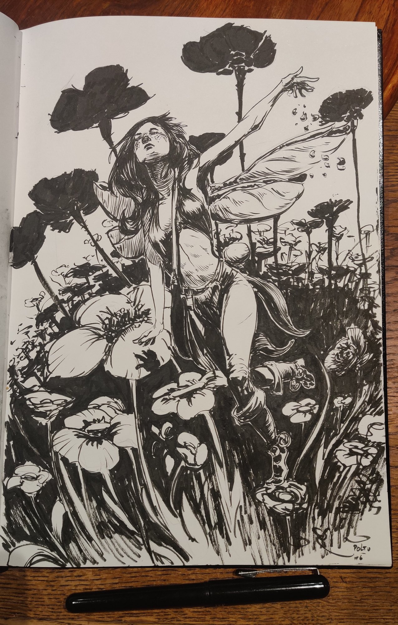 Salut les artistes j'espère que ça va par chez vous. Vous avez fait des super trucs pour ce 6e jour !! @SKARRSuper dessin !! Je le verrais bien en Tatoo celui la ! @alkecesaTrès cool l'idée de la couleur dorée ca rend vraiment bien @Ayaneth j'aime beaucoup ton design ! Il est propre et pas chargé ca rend trop bien ! @stefouSuper le sanglier tu bosses en tradi ou en digital ? Si c'est digital le résultat est bluffant et c'est ce que je vise comme rendu ^^ Voici le mien ^^ Je suis parti de l'idée de faire le bouquet sur une Sylvari (race d'homme arbre dans GW2 pour ceux qui ne connaissent pas ^^)7 points