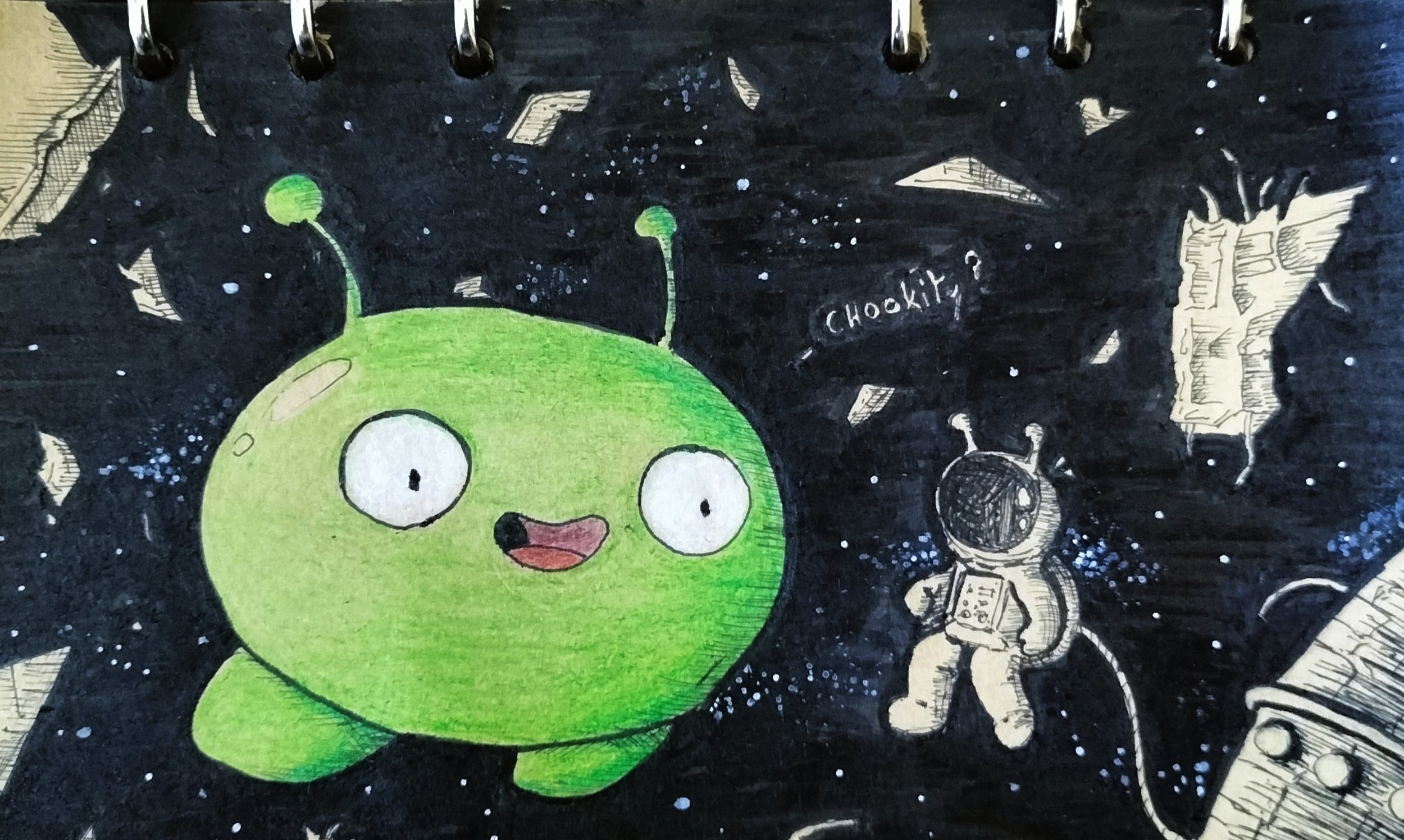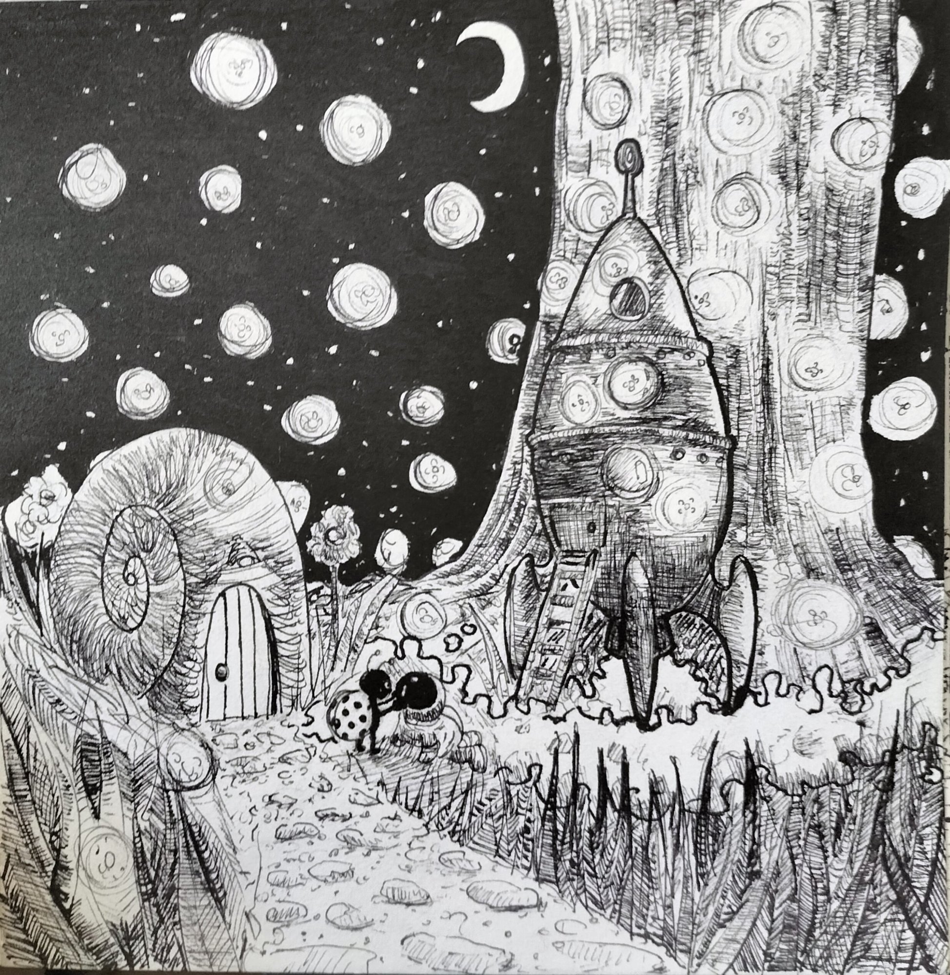 Hello ici ! Je poste via téléphone aujourd'hui, donc je m'excuse mais je galère à retourner voir les créations de chacun pour commenter ! Mais vous avez assuré encore une fois, y'a des pépites 🥰 @Sylvus j'ai jamais joué à GW mais tes DP donnent super envie de découvrir l'univers Pour mon dessin du jour, je vous invite au voyage ( déjà dans le thème eheh ) 2 ans dans le passé ! Le mot était fusée, et j'avais dessiné ça : Ça m'a directement pop à l'esprit, donc 2 ans après, ma p'tite coccinelle a poursuivi son voyage dans l'espace, où elle vient de faire une rencontre pour le moins... Déconcertante ! Pour une fois j'y ai ajouté de la couleur au crayon, et si vous ne connaissez pas cette série incroyable qu'est Final Space, je vous invite à aller la découvrir avant qu'elle ne soit totalement supprimée des plateformes ( l'histoire de l'avenir de cette série est plutôt moche, la faute aux gens qui auront jamais assez de pognon.. ) !16 points
