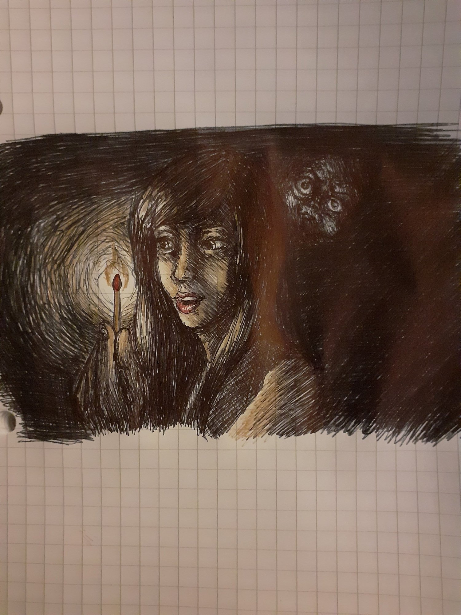 J'adore quand le mot du jour peut être traduit de différentes manières, ça donne une belle diversité! @Lykkelig j'aime beaucoup e symbolisme de ton dessin @albarjav hahaha oui, c'est un peu ça parfois @ApostroKe oh une référence historique!! La médiéviste en moi est très très heureuse hahaha @gohlgrinm pauvre pioupiou, espérons qu'ils ne fassent pas trop d'expériences sur lui! @deathkyss toujours épatée par ta technique au stylo! @Ayaneth super idée!! @stefou un régal pour les yeux et en plus un petit peu de culture! @Aelenn belle transcription de l'ambiance du conte Je suis aussi partie sur "allumette"... envie de faire un truc un peu méditaif... ben pour le coup, c'est réussi!21 points