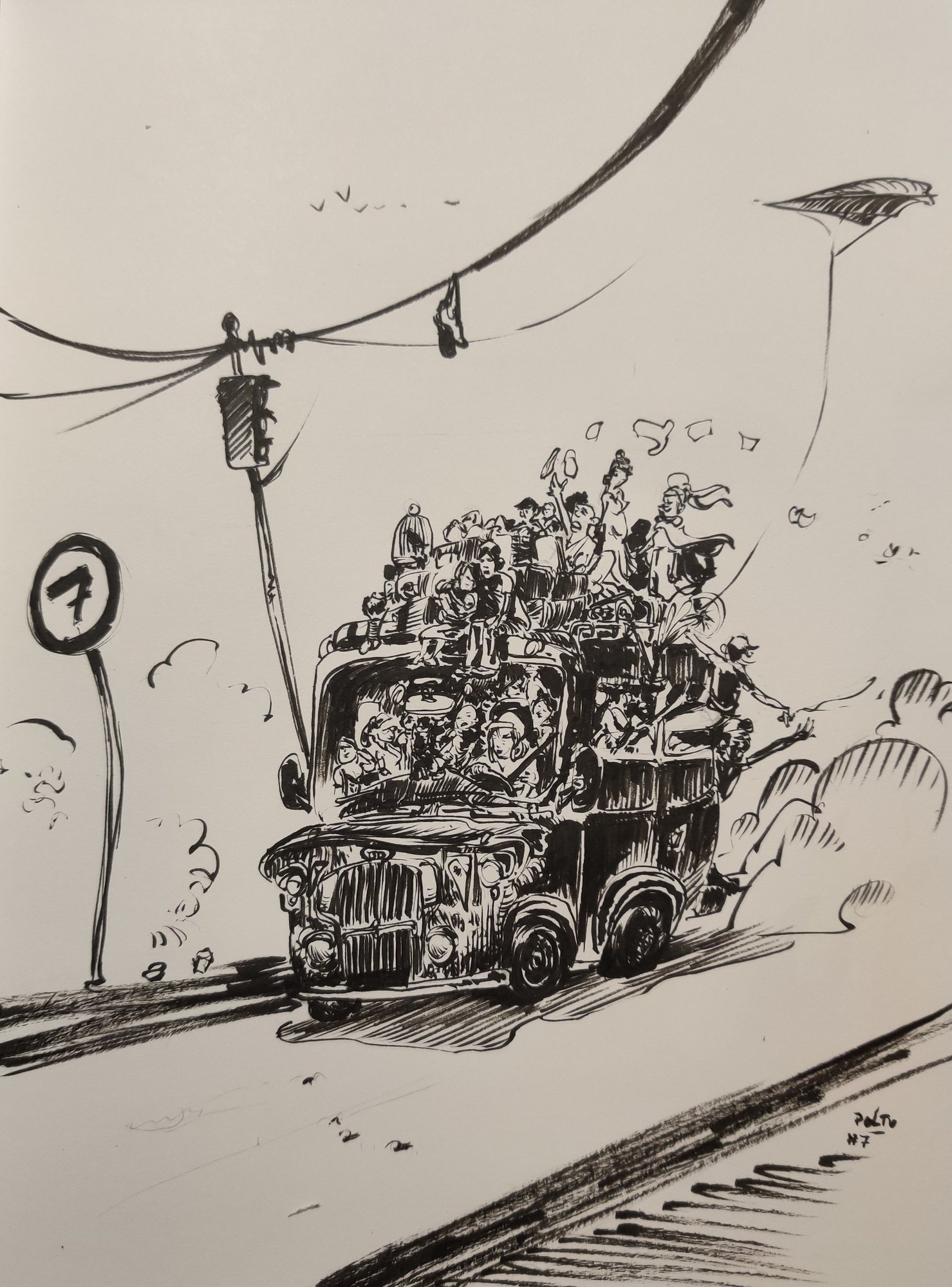 @QuardannaultSimple et efficace. ça colle parfaitement au thème 🙂 @FaydenSimple et efficace aussi lol. La line est super propre! GG @MarieBllyJ'aime beaucoup la lumière qui donne vraiment l'impression d'un coucher de soleil. @SylvusJ'adore le côté taches d'encre que tu donnes à tes illus. ça donne beaucoup de caractère en plus d'être bien réalisé! GG! Et non je ne suis pas tatoueur mais j'adore regarder des dessins de tatoueurs donc...^^ @GloubibarjoElles sont cools tes nanas. Tu taffes bien l'anatomie féminine avec cet inktober ! 🙂 Oui je pousse plus loin au fur et à mesure mais ça me ralentit de plus en plus. A voir combien de temps je vais tenir lol @ndreamCool ce côté crayonné ! J'l'aurais bien vu dans un carnet de voyage retrouvé dans ton grenier ^^ @gohlgrinmMDR oui ça a un côté Captain Igloo 😜 t'inquiètes on sait que l'univers de Pioupiou est à part donc ça fonctionne 😉 @deathkyssCool, je connaissais pas la série. J'irais voir ça 👍 @makoVraiment sympa cette illu. Un côté Jean-Baptiste Monge. @pandoMerci^^. Je le connais pas celui-là de Jules Verne...👍 @AyanethC'est vrai que ton bus a un côté magic bus lol. Et c'est vrai qu'en court de route, mon illu m'a fait penser à Hemingway, mais il était pas à bord d'un 3 mats 😉 @stefouBien joyeuse cette grenouille et oui y'a un côté "Love is all" XD @Archange.St.MichelCool cette illu, et pas évident la pose. On dirait Sakura de "Naruto" ^^6 points