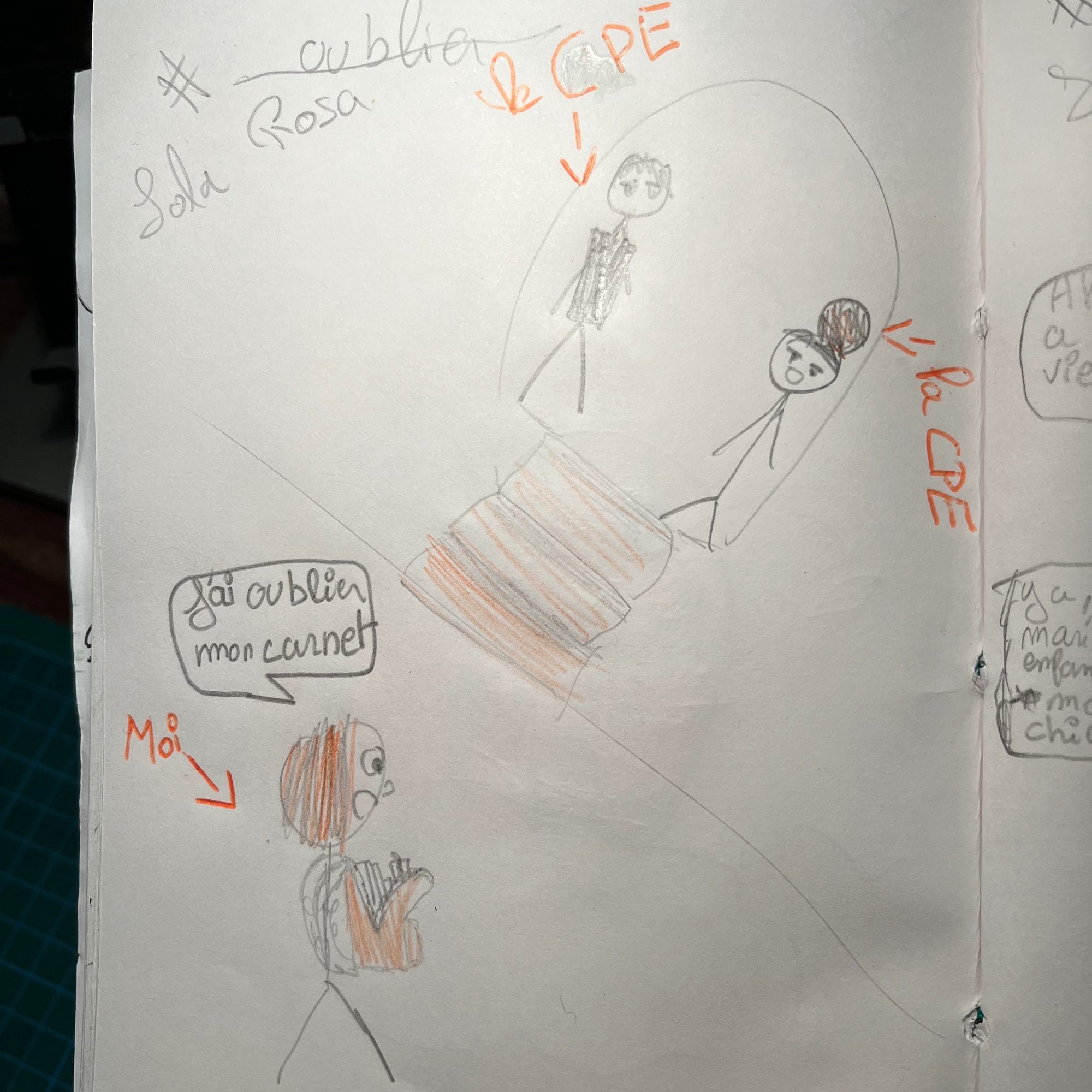 @SKARRMerci pour elle @jekoMerci, à étudier.... @stefou je suis partie sur le même délire En ce moment c'est un peu dur de garder le rythme, je commence tard, du coup je fini toujours à la traine, et je n'ai pas le temps de fignoler, désolée Ma Louloutte vous promet de rattraper les jours dès que possible, elle veut absolument participer jusqu'au bout J'ajoute le dessin de ma fille: Histoire d'école11 points