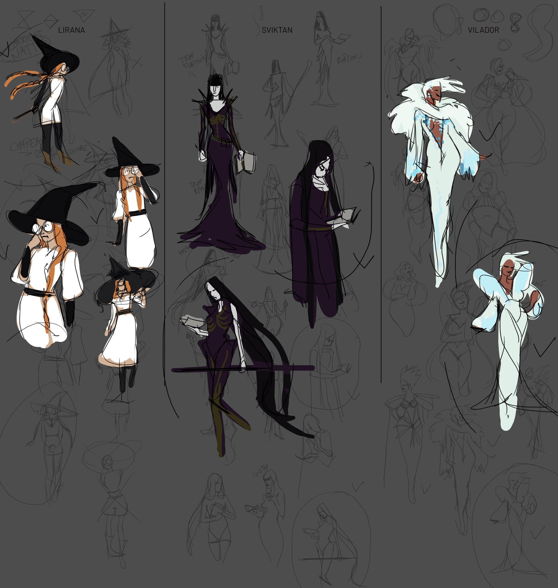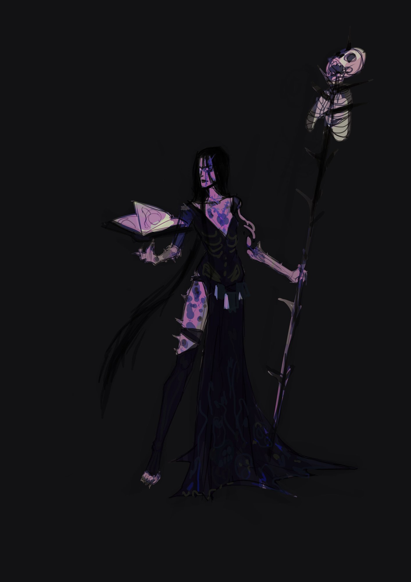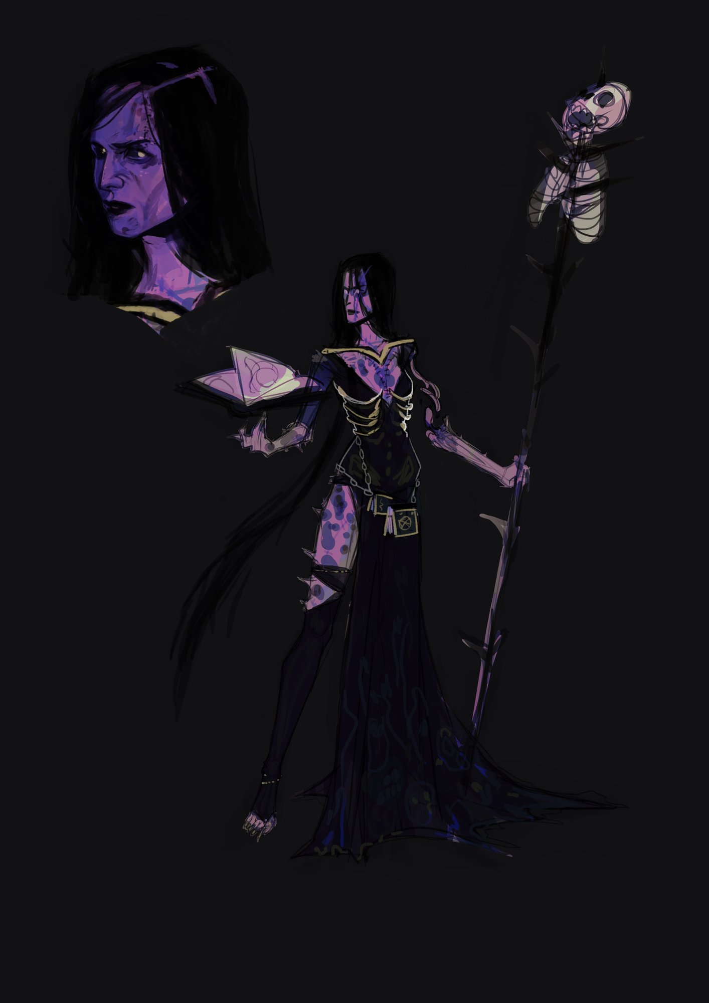 Salut ! J'ouvre mon premier sujet avec mes recherches pour le 15e challenge. Les trois persos qui m'ont le plus inspirés sont Lirana, Sviktan et Vilador :J'en suis qu'aux premiers tâtonnements, son design va sûrement bcp évoluer une fois la phase de croquis dégueu passée (j'hésite encore à pousser le côté gangrène/corruption/nécro à son max' ou me rapprocher des premiers sketchs où elle est un peu plus "présentable" pour une prof' et fait moins rebut de fosse septique), mais voilà où j'en suis pour le moment. A bientôt !6 points