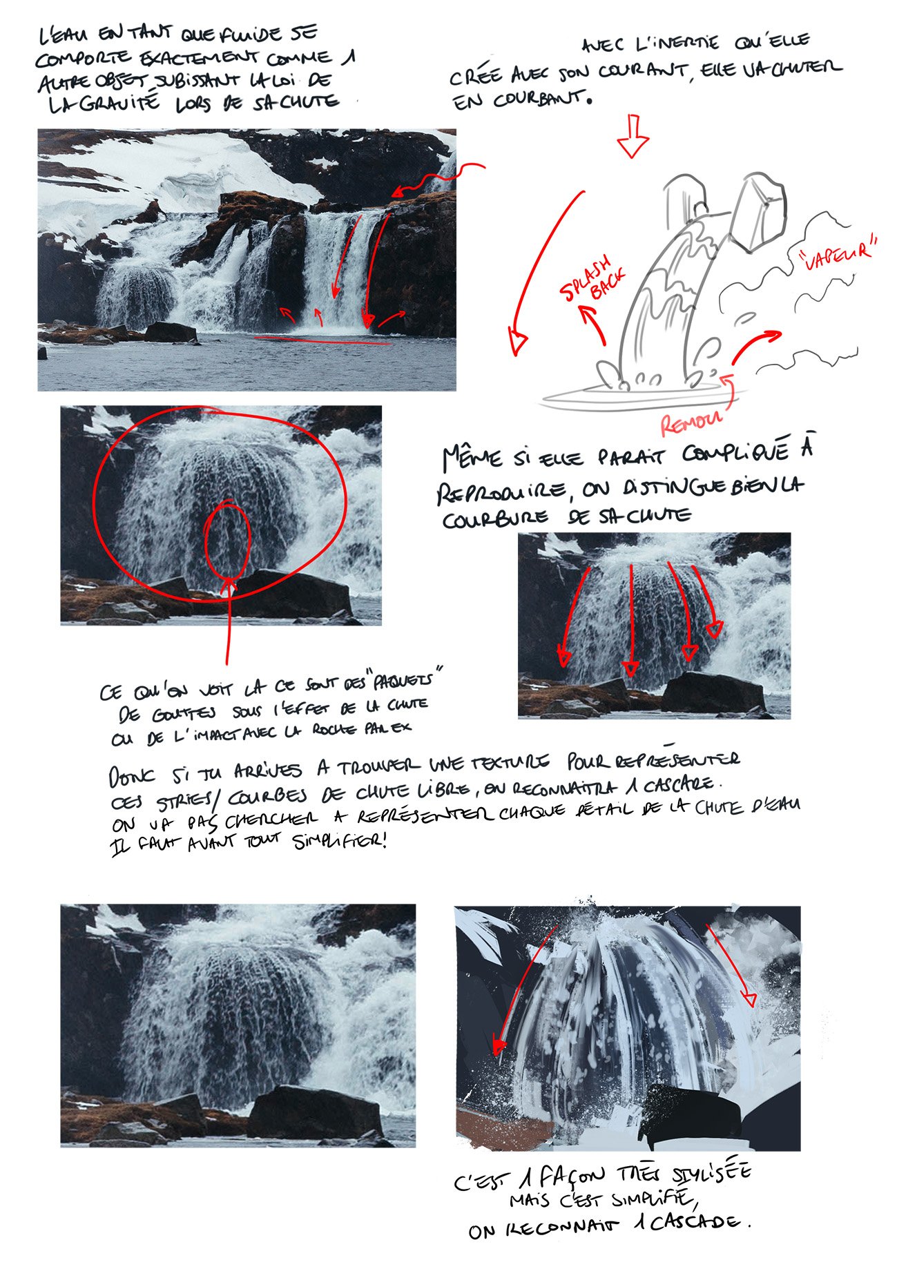 Hello, nice job tout ça! tu peux booster la saturation de ta terre un peu tu remarqueras que les tons foncées de la photo sont beaucoup plus saturés comparés à ceux de ton image - tu peux bleuter un peu plus cette zone dans le brouillard et le rendre moins gris - la zone des galets est un peu trop net en ligne droite, ça mériterait de voir un peu plus d’irrégularités dans la délimitation avec des galets qui dépassent et de tailles différentes je te joins un petit tuto sur le traitement de l'eau pour t'aider 🙂1 point