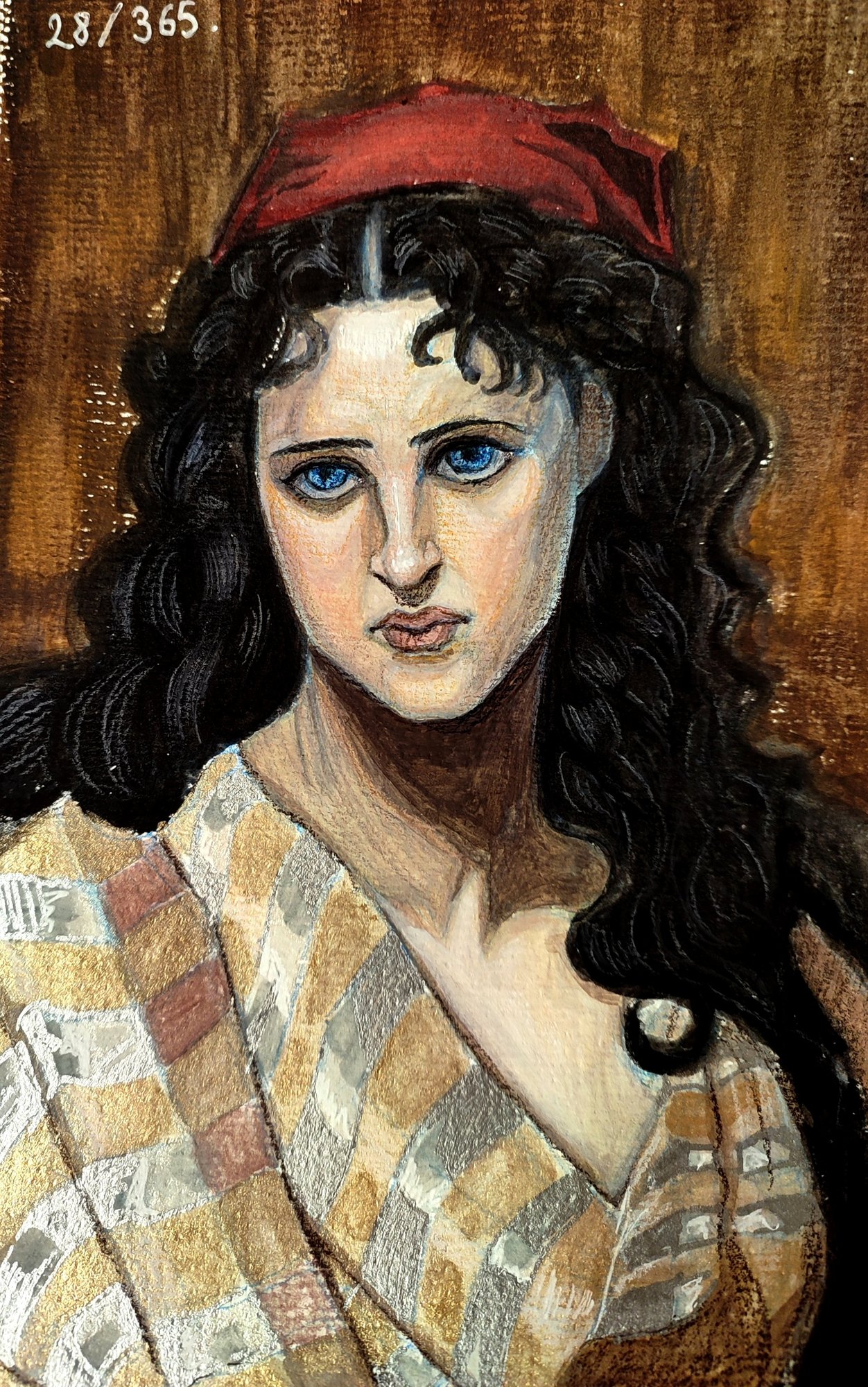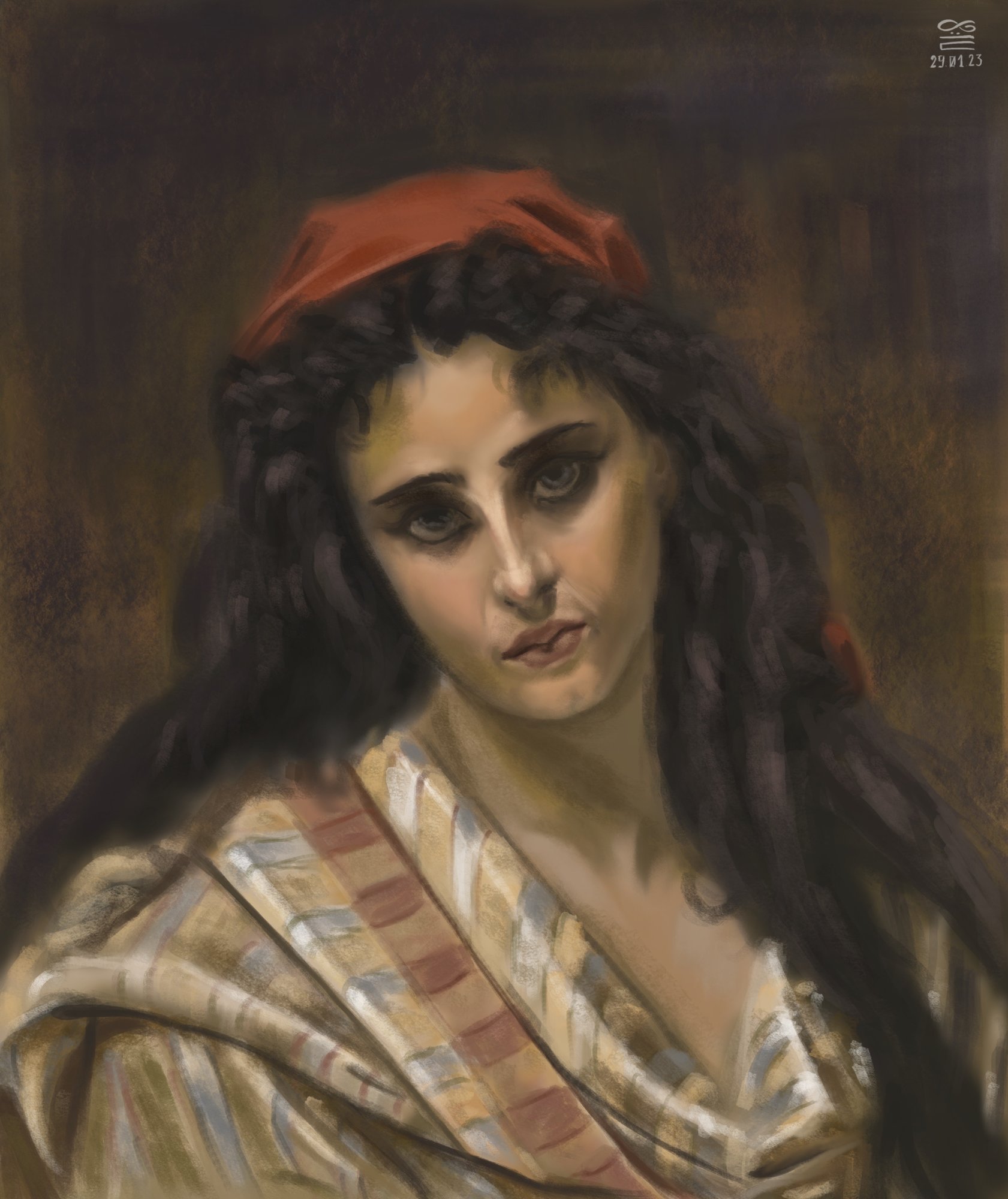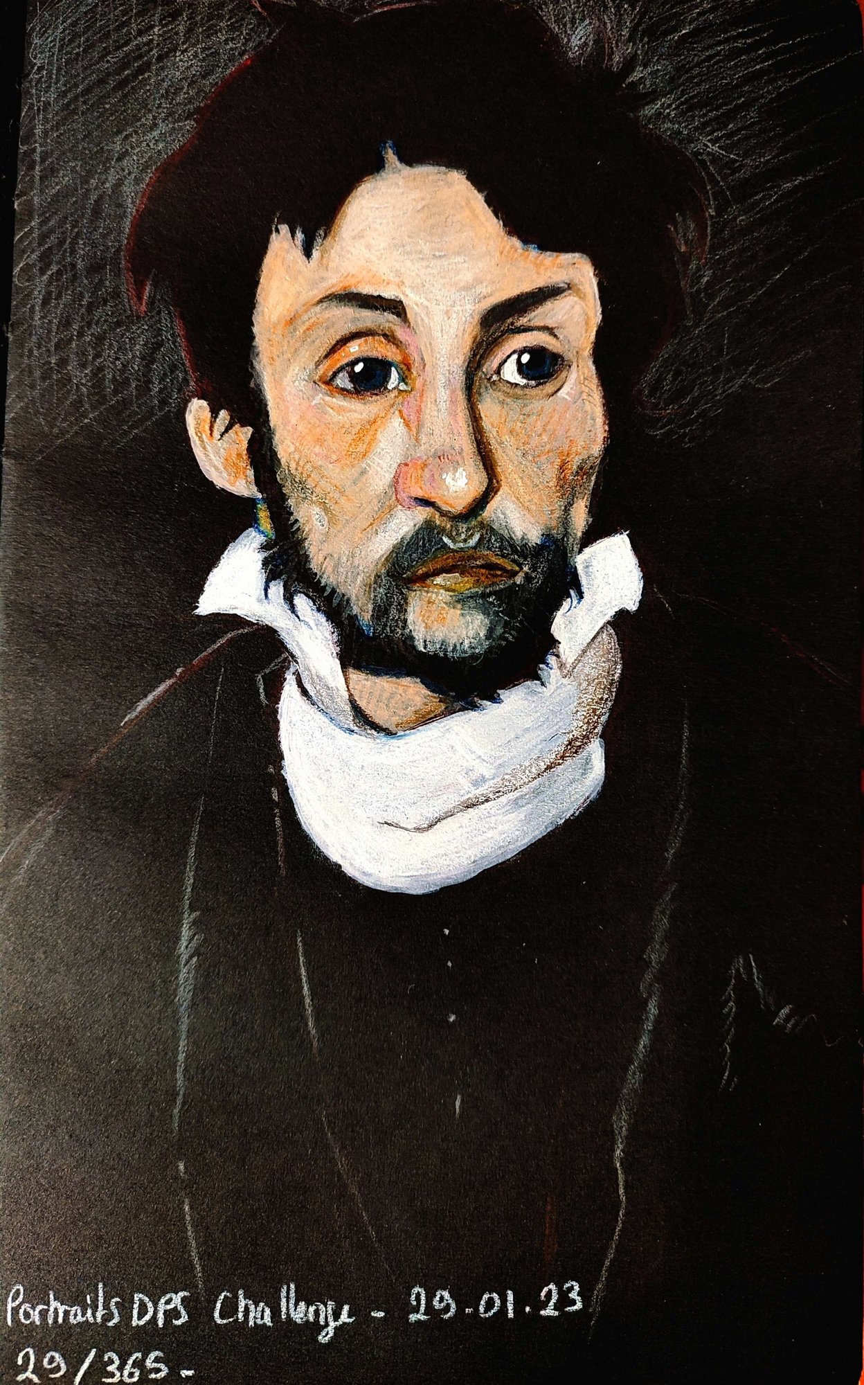 Bonjour, je découvre ce défi seulement aujourd'hui. Je ne pense pas que je pourrai faire un portrait par jour, mais je vais essayer d'en faire quelques-uns, et aussi essayer de faire ceux du mois de début janvier, au fur et à mesure. J'essaie des techniques et des brushs différents sur Krita, mais comme ça fait un petit moment que je n'avais pas fait de DP, ce n'est pas extra.12 points