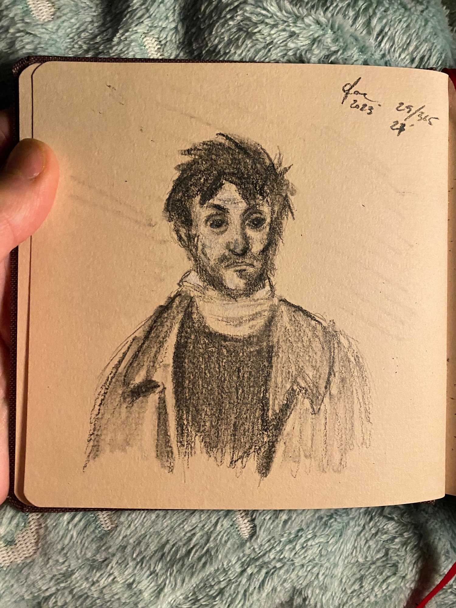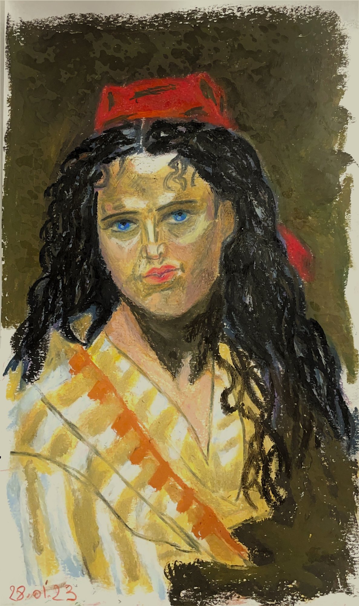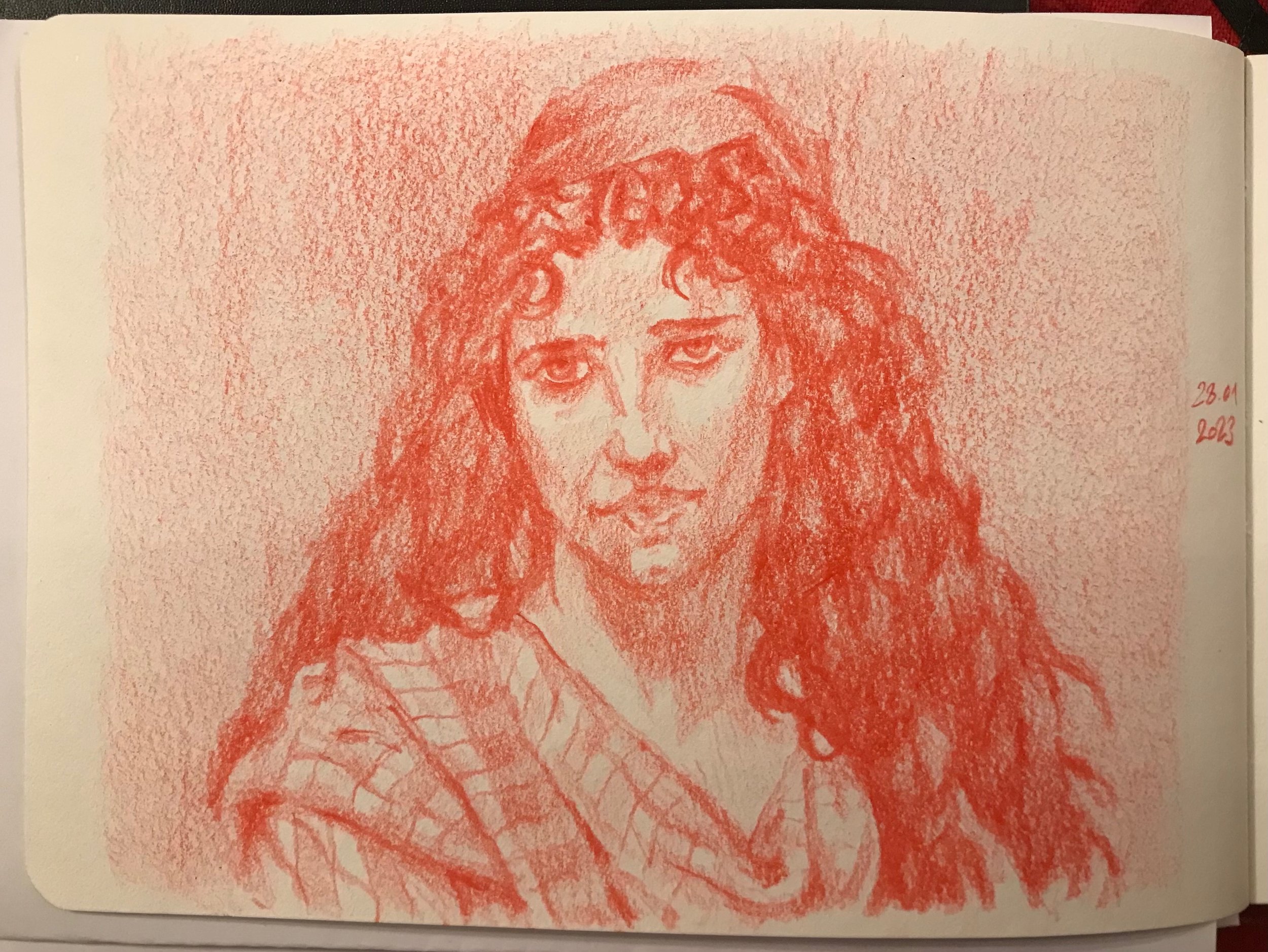 Bonjour, je découvre ce défi seulement aujourd'hui. Je ne pense pas que je pourrai faire un portrait par jour, mais je vais essayer d'en faire quelques-uns, et aussi essayer de faire ceux du mois de début janvier, au fur et à mesure. J'essaie des techniques et des brushs différents sur Krita, mais comme ça fait un petit moment que je n'avais pas fait de DP, ce n'est pas extra.12 points