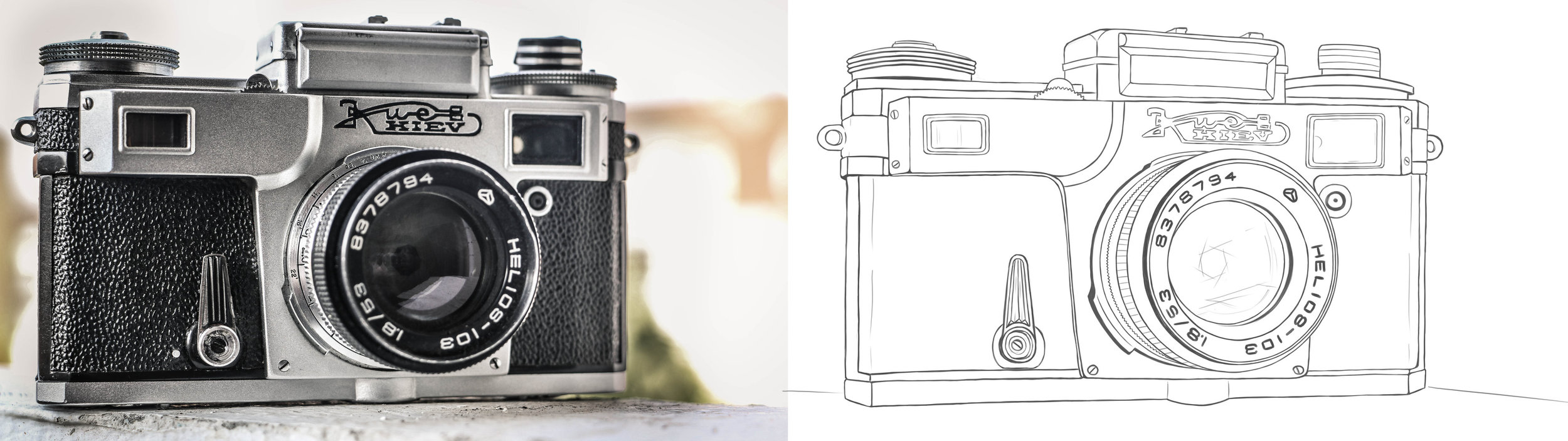 Hello ! le dernier croquis d'objet, l'appareil photo. Et ben c'était dur, plus difficile même que le coquillage, je ne m'y attendais pas... J'y ai passé beaucoup trop de temps, donc pas de hachure pour le coup, et je vais l'avouer, j'ai décalqué les inscriptions, plus le courage à la fin... Mais je suis allée au bout quand même ! Je vais faire une petite pause maintenant...1 point