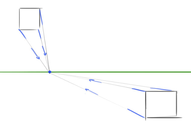 Non en fait peu importe la situation, tes lignes de fuites vont toujours converger vers un point de fuite et donc vers l'horizon : Parfois tu peux avoir un objet penché et donc qui se dirige vers un point au dessus de l'horizon ou en dessous. C'est le cas si tu soulève ta boite par exemple à l'avant ou bien à l'arrière. Par contre le point de fuite sera toujours devant toi ou sur un côté ou bien en haut ou en bas, mais il ne peut pas être derrière toi, tu auras toujours des lignes qui convergent mais pas vers l'observateur. Quand tu observes une maison, le coin de la maison qui est le plus proche de toi sera toujours plus grand que le coin qui est plus éloigné de toi. De même que si tu observes 2 personnes de même taille, la plus éloignée apparaitra forcément plus petite si tu les prend en photo. La perspective est utilisée dans les jeux vidéo "2d" comme dans Dofus par exemple, souvent en fait dans ce cas il n'y a aucun point de fuite, juste des lignes de fuites qui ont tous le même angle. Du coup on aura un rendu vraiment pas naturel et surtout un seul angle de vue utilisé, un genre de 3/4 parfait et une vue à moitié de dessus. Du coup c'est très limité car si tu utilises la perspective cavalière avec d'autres angles de vue tu vas obtenir des déformations qui vont rendre ton image peu crédible. En fait cette perspective n'est pas représentative de la réalité, c'est plus schématique et utilisé pour la géométrie, la présentation de design etc... C'est comme ca que j'interprète les choses en tout cas ^^ Pour les poils/détails je voyais qqchose comme ca. Pour la suite je te laisse avancer, keep it up !1 point