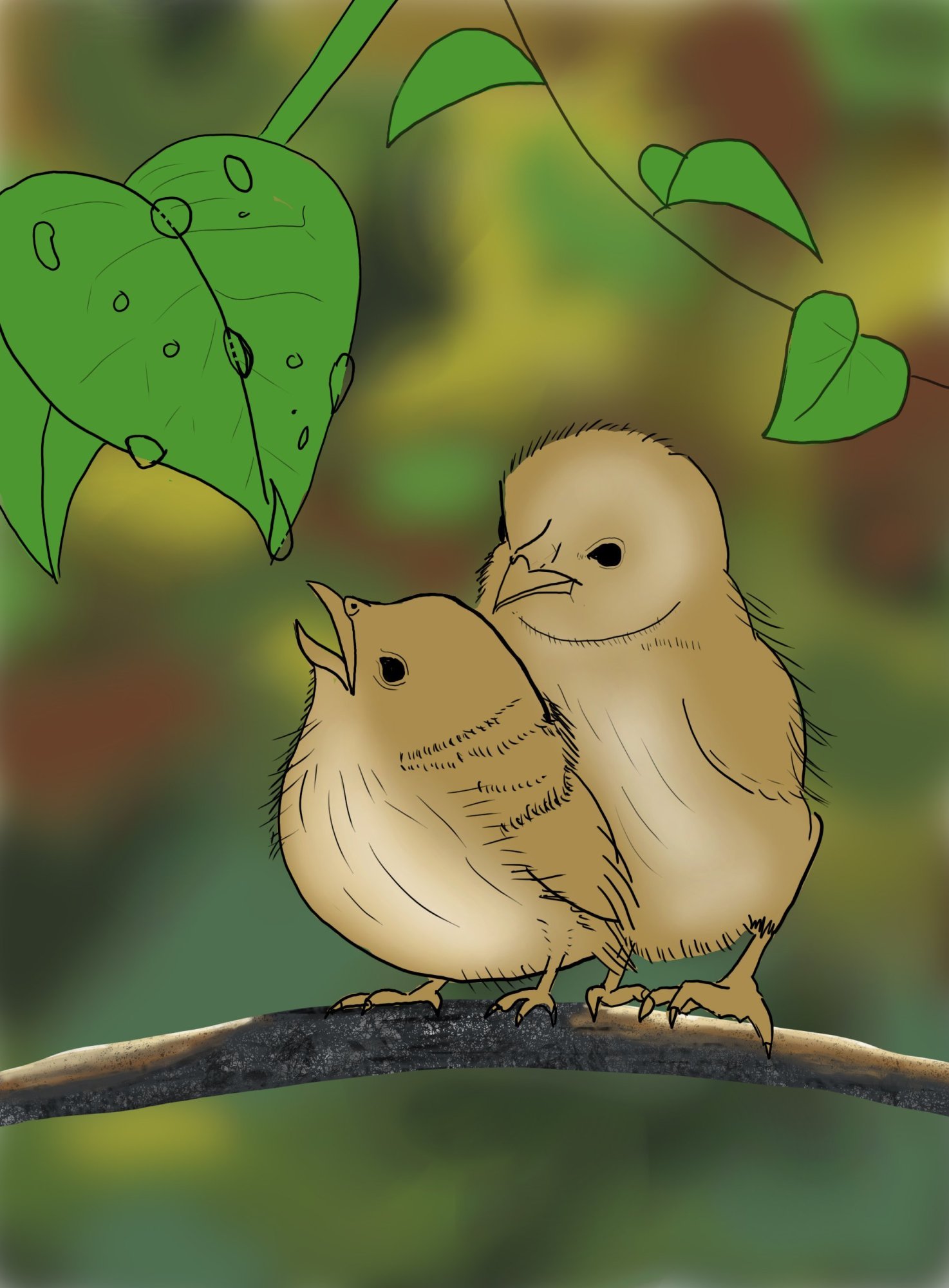 Effectivement j'avais des points qui n'étaient pas cochés. Par contre mon onglet paramètre de pinceau n'a pas le point 3 pour la taille. J'ai seulement réussi pour l'opacité .merci pour le coup de main! Edit : j'ai trouvé. Je n'avais pas remarquer qu'il avait un option pour la taille sur l'écran principal. J'avais cliqué sur celui de l'opacité seulement. j' ai commencé les oisillons. Je les aime bien hihi bon brush!!1 point