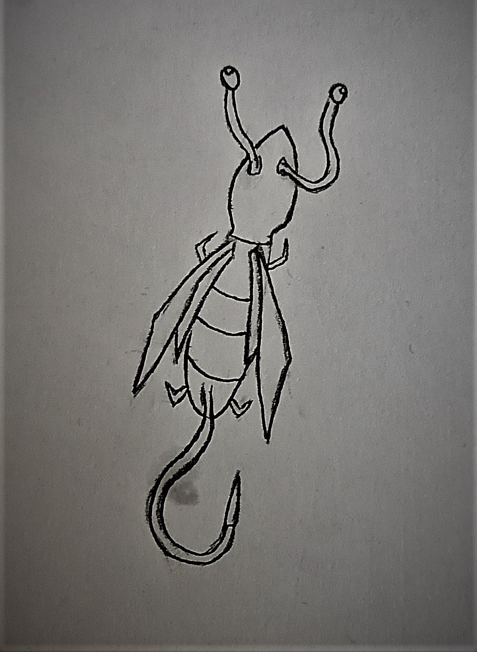 Bien le bonjour ! Je fais ce petit sujet sans prétention pour montrer un peu ce que je fais, pour avoir quelques retours, et en donner aussi 😄 Je commence avec un Design de Creature insectoïde. Rien de très extravagant, je voulais quelque chose d'assez ancré dans la réalité, même si c'est pour un projet perso dans un univers dark fantasy / post apo ! Et sans les ailes : Ah et voilà l'idée/croquis fait il y a deux ans, histoire de montrer la progression, et que le dessin et la peinture c'est juste du travail 😁1 point
