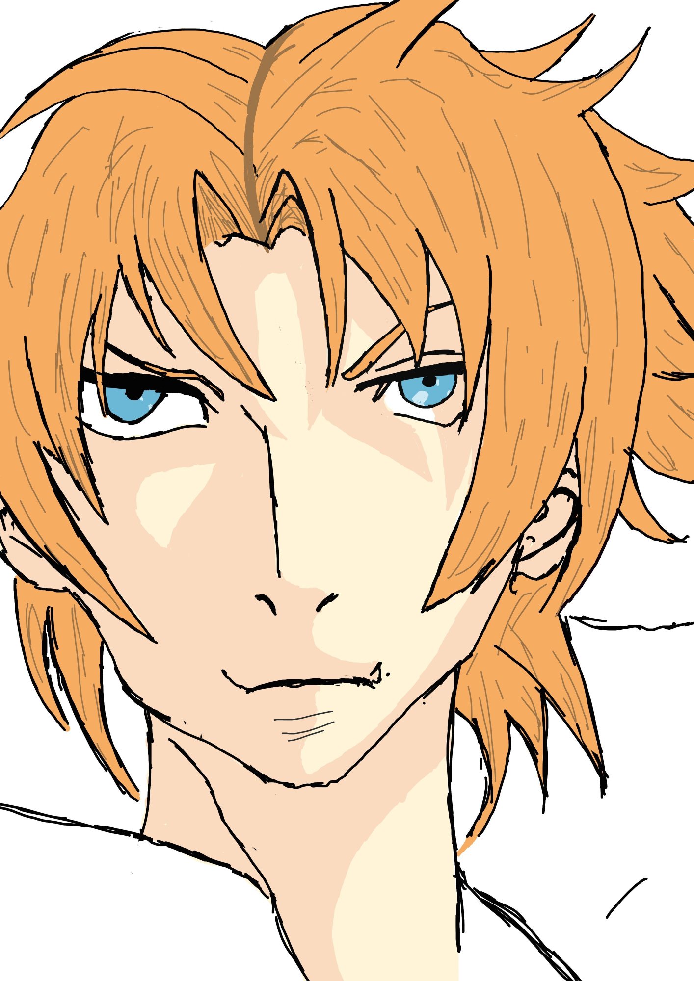 Hello, Bon bah voila pour ma part le dessin du premier exercice. Assez soft, j'avoue que j'aimerais bien commencer les cours. J'ai au moins fait suffisamment pour montrer ce que je sais deja faire histoire de voir le résultat à la fin des cours. Je m'appelle Emmanuel, je suis étudiant en école d'ingénieur mais ma seconde vocation était de faire de l'art numérique. J'ai commencé par dessiner du manga, ça se voit je pense. J'ai commencé il y a 8 ans, sur papier, mais je suis arrivé à un stade où je ne progressai plus. J'ai eu une tablette graphique pour mes 18 ans mais malgré mes tentatives, je n'ai jamais trouvé comment obtenir le résultat que je cherchais. Je pratique quand même au possible au sein d'une asso de mon école mais pas moyen de faire mieux. Je compte du coup sur ces cours pour vraiment progresser, j'ai hâte de voir ce que ça donnera.1 point
