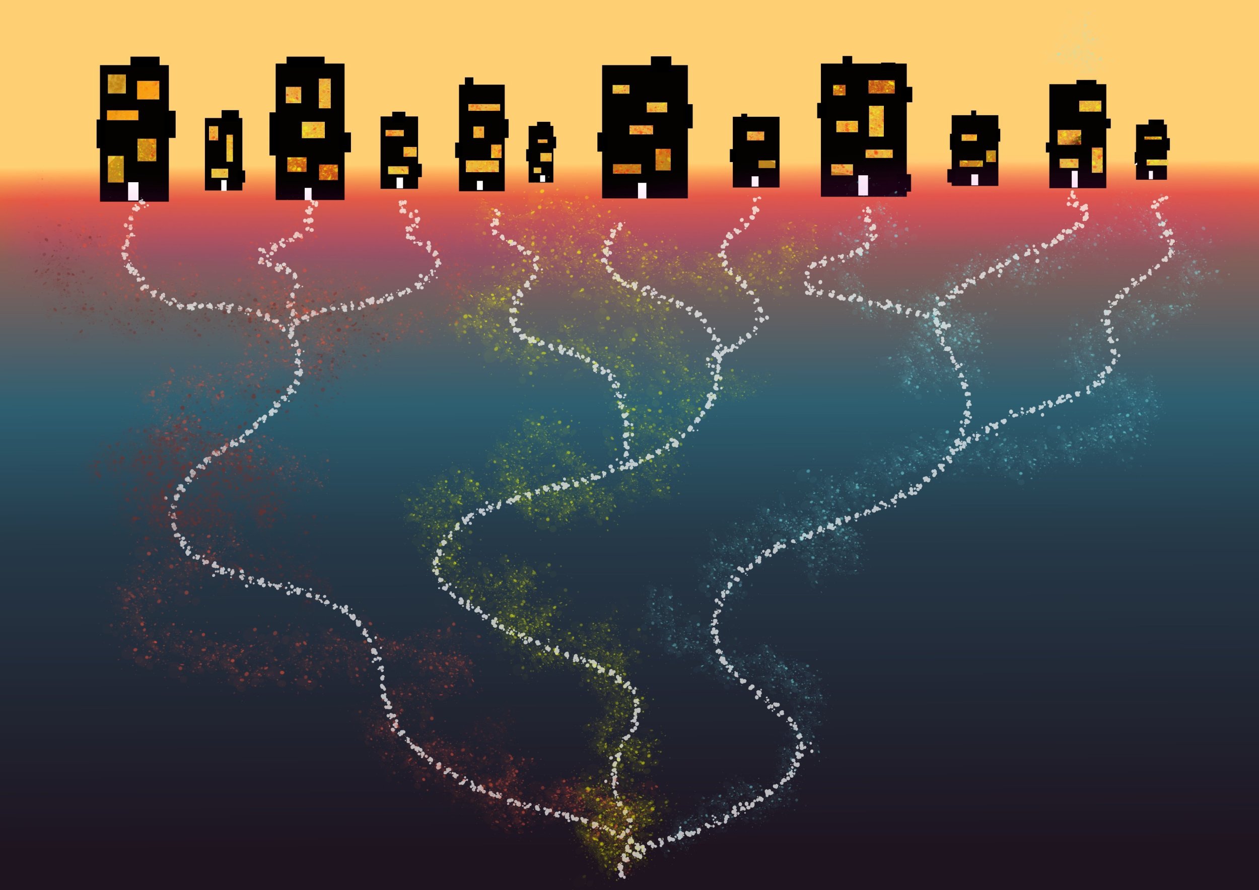 Et hop là, voici mon croquis. Pour donner une idée de ce que je veux faire c'est que certains blocs seront en pierre et d'autres seront lumineux notamment ceux autour des baleines. L'idée serait de faire une scène plutôt sombre, en contre jour, avec des zones lumineuses plutôt d'un bleu cyan ! Et je pense que le sol sera un peu de type humide ou avec des zones de reflet ca pourrait être cool Je suis bien content des baleines, en revanche honte à moi j'arrivais pas a faire le croquis du perso du coup je suis repassé par dessus mon image de réf. Il va falloir bosser les personnes ça c'est sur !é ✌️😁1 point