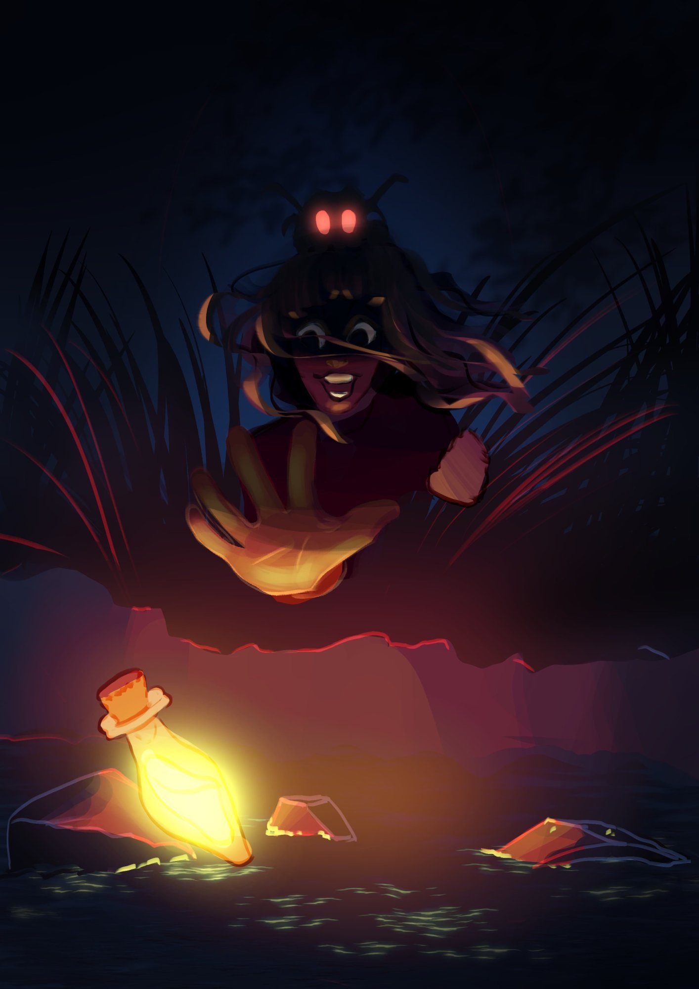 @Savadja Super ces couleurs @fabio Multipass !! @Samaële j'adore la dynamique de tes croquis et les couleurs @daff la texture est incroyable @Emifei c'est très joli @ndream Super l'idée, c'est trop chou @stefou cette lumiere j'adore ! Longeant le lit de la rivière enchantée, une lueur attira le regard de nos amies. Alors que Charlie repoussait les hautes herbes, elles découvrirent, nichée entre 2 larges rochers, une fiole magique renfermant un liquide doré !22 points