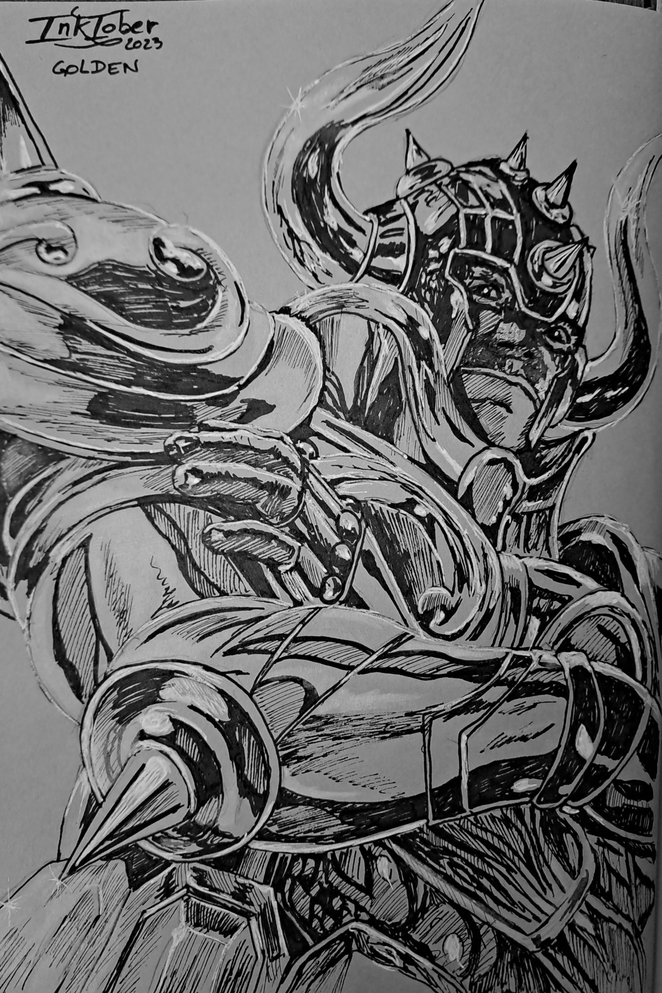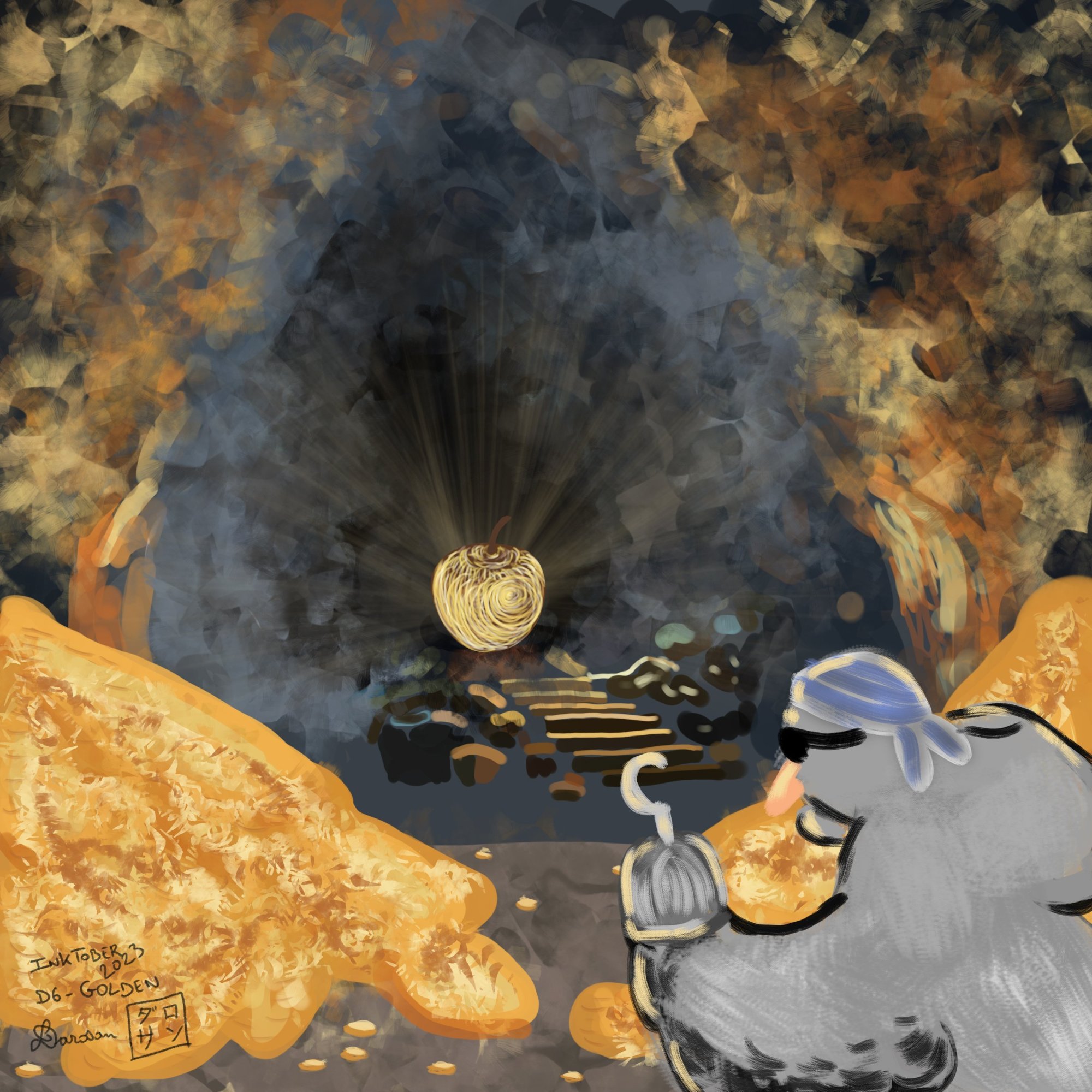 @Savadja Waoouu ! Ton rendu doré est bluffant ! Un portrait très réussi, félicitations ! @daffc'est sur que le rendu OR en N&B pas évident mais vous vous en êtes bien sortis @fabioje n'ai pas la ref mais voici une autre vision du mot golden😉 @DenyComme toi j'en suis à mon 4éme inktober mais si je compte bien 31x3 +6 ça fait 99 le 100éme sera demain à moins que tu aies fait 2 propositions un jour Bravo en tous cas !. Sinon ton idée sur la pépite géante est géniale, j'adore leurs tronches et le storytelling est bien là avec le chien qui s’énerve vers les gens à cheval en haut. Top ! @PandigoBelle idée belle réalisation ! @Samaëlecroquis qui nous transportent en vacances. Comment tu choisi ton thème, au feeling du jour ou autre ? @sagita magicienne est cool, le doré fait bien ressortir le design de ton perso @ApostroKeIl est bien flippant ton perso bien doré pour le coup ! @Emifeiplein de classe et de rêverie dans ton illus, cool ! @ndreamTa ref aux noces de mariage est vraiment une bonne idée, jaloux de n'y avoir pas pensé ! @loukiJe surkiffe le look des tes estivants. Trop bien ! @diamonesOriginale cette bague qui passe de l'argent à l'or @liwyBelle trouvaille pour relancer ton histoire. @Darosanet @Albarjavcomme moi vous avez pensé à la pomme Golden ahah du coup ça donne ceci:36 points