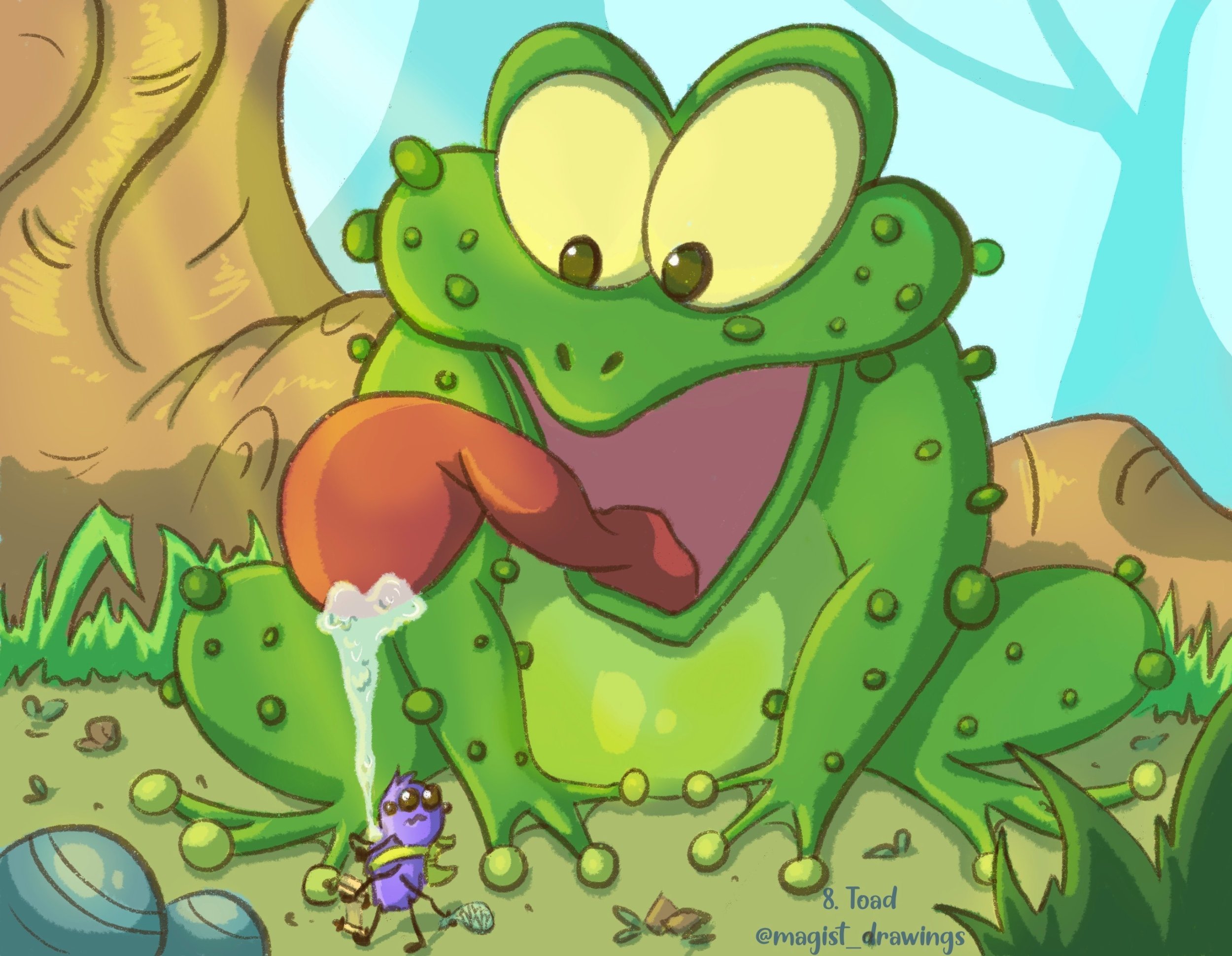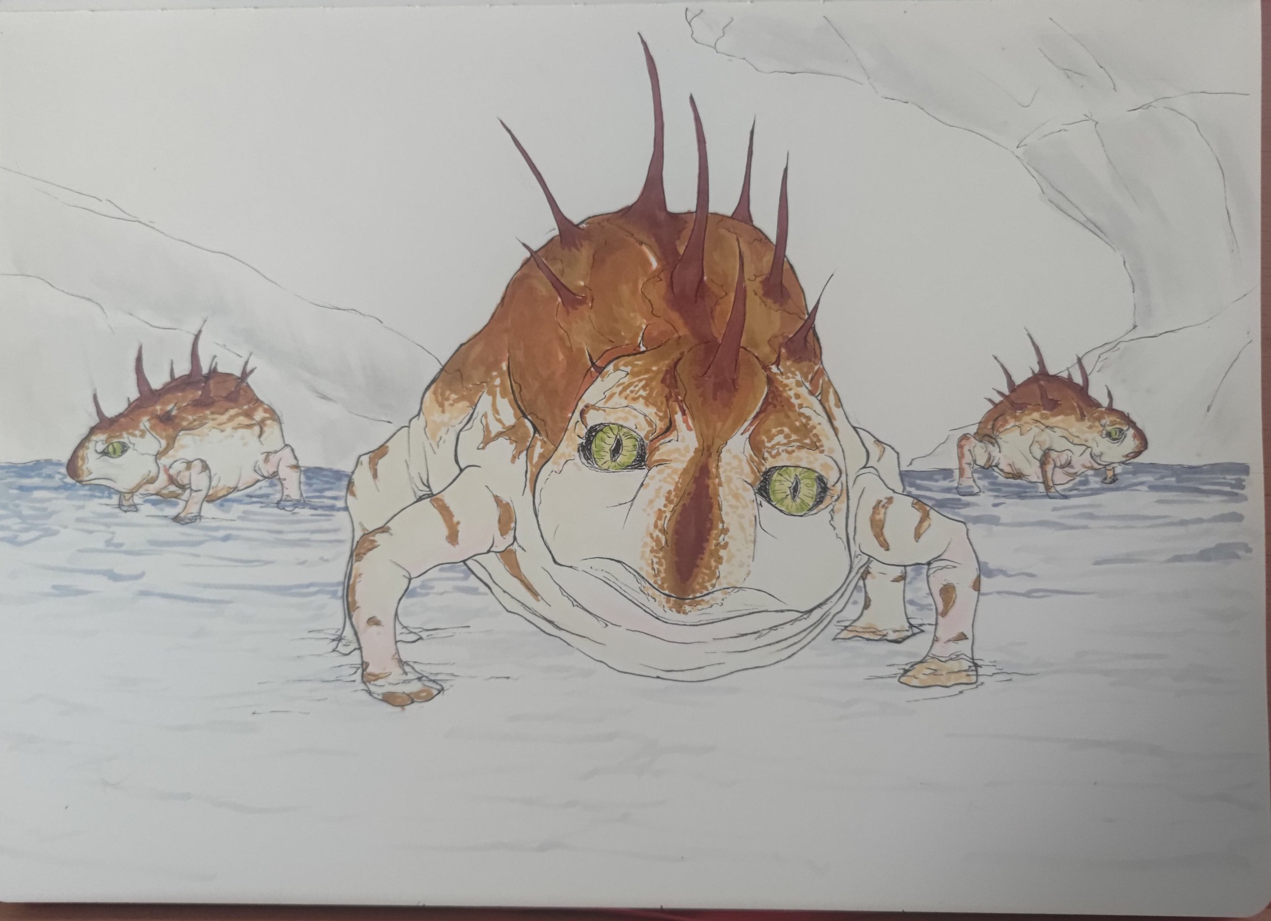 @Marco Pas mal du tout. @Deny Ha ha, excellente cette crapaude @liwy C'est un tour qui risque d'être, vertigineux, et qui retourne l'estomac XD @daff Oh, superbe, j'adore ton mécha-crapaud 😍 @ApostroKe Je préfère pas imaginer un film ou il faut fuir ces trucs XD @krokciole Le roi crapaud ? @alexisdelstanche Superbe @Draconia Très bien fait, bravo ^^ Pour ma part, ce foutu crapaud géant dans toutes ses variantes sur FF XIV. Il vous gonfle vous aussi ? XD Pas trop inspiré sinon.20 points