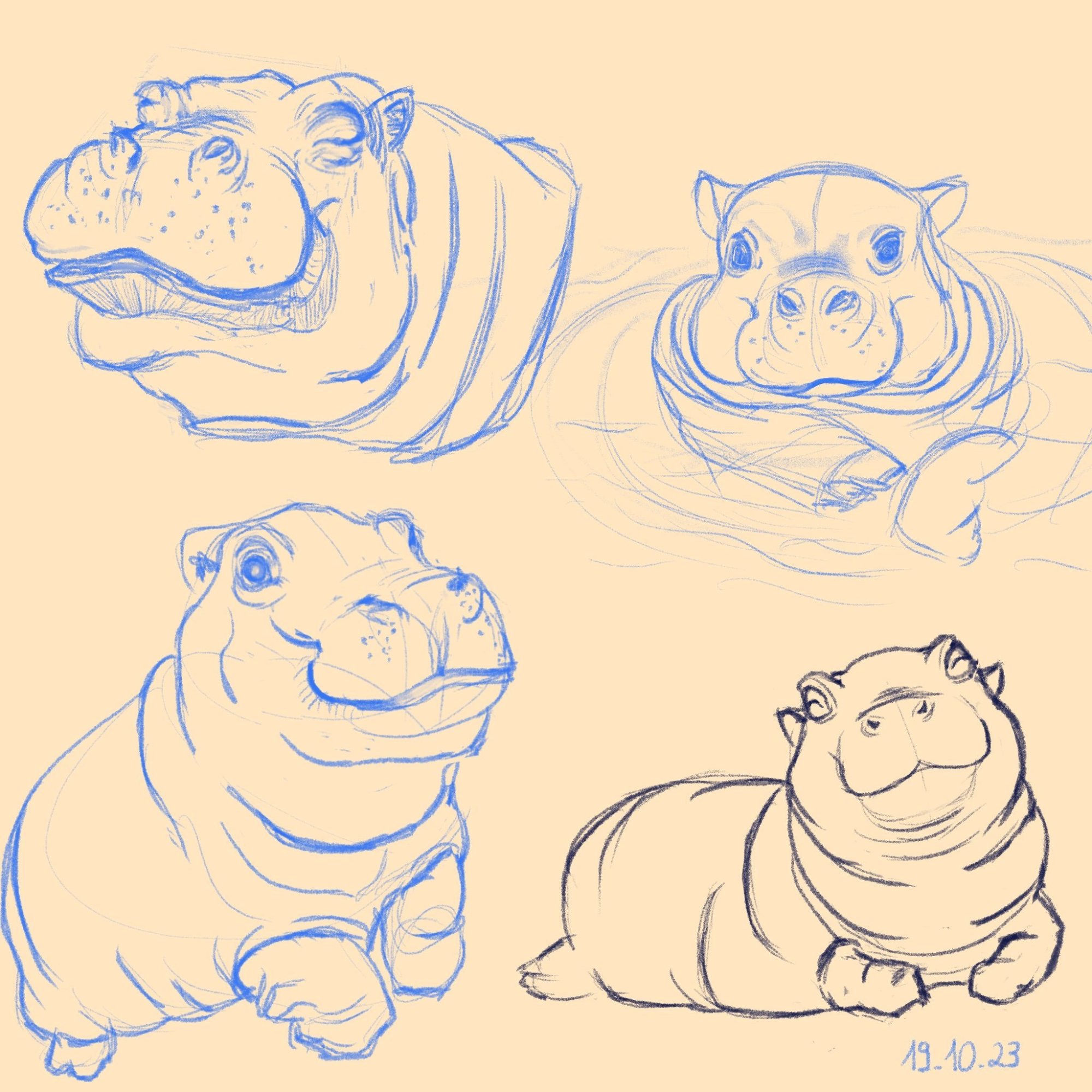 Plop ! Certains pensent au cochon. Pour moi, ça sera une planche de mignons petits hippos. J'essaierai de mettre un peu de couleur si j'ai le temps tout à l'heure. @fabio Clairement bien trouvé ! Je trouve parfois dommage que tu ne fasses pas varier un peu plus le poids de tes lines, même si ton style fonctionne toujours autant. @HatsuJuste génial, j'adore, avec son petit geste sur le bidon, c'est la perfection pour le thème. Cool tes couleurs ! @DenyJe ne peux qu'approuver tes dires, et tu leur rends honneur avec ce beau dessin. Toujours aussi agréable de découvrir tes œuvres chaque jour.26 points