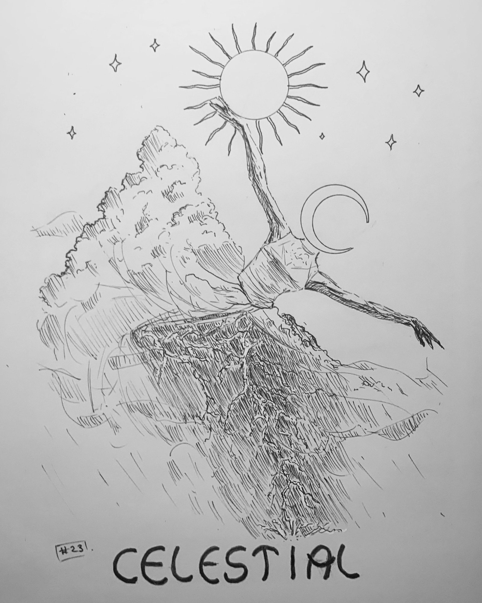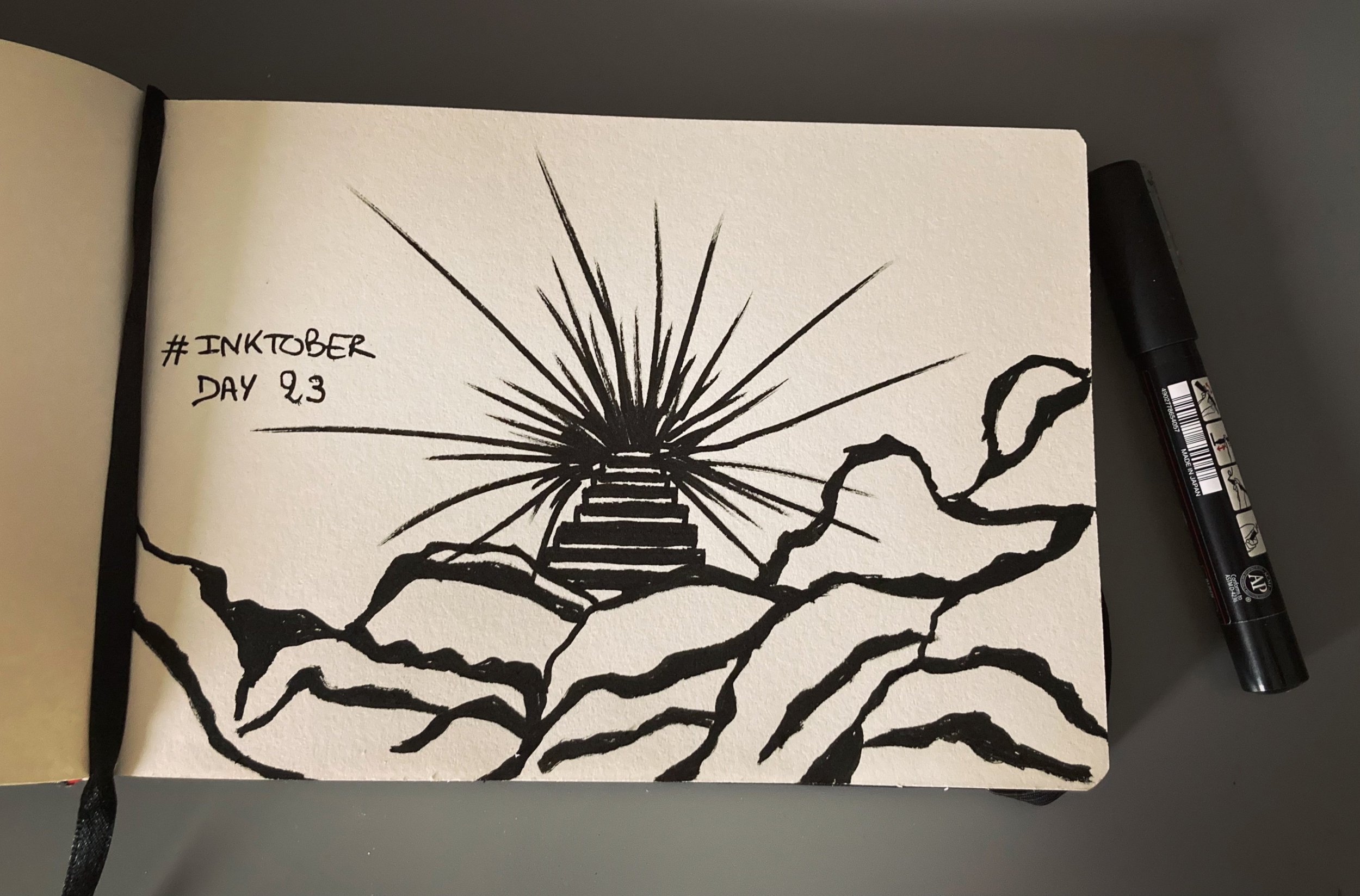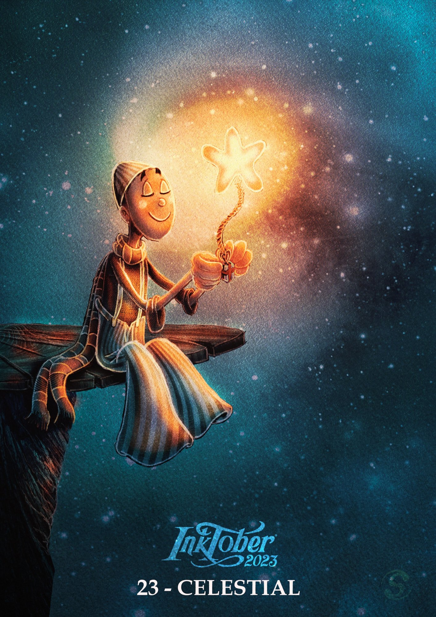 @Samaëlebien sympa ces enfants qui jouent dans l'arbre @kalysbelle étude. Dommage il manque la guerrière sur sa tête ! @evelynetC'est une belle constellation ça, en plus pas très connue 😜 @MarcoTrès poétique ! @PandigoLà c'est le cas de le dire cette maison est dans un coin perdu ! @ApostroKeTu as dû t'amuser à faire tout ça ! @EmifeiLe ciel en bouteille, cool ! @diamones Toujours de très belles animations @sagisuper le design même si je trouve que les étoiles ne ressortent pas assez @daffl'horizon de travers en bas me gène un peu mais sinon il en jette ton dieu égyptien ! Top ! Encore un mot pas évident. J'ai repris un vieux perso d'un projet qui n'a jamais vu le jour et je l'ai réadapté à l'inktober25 points