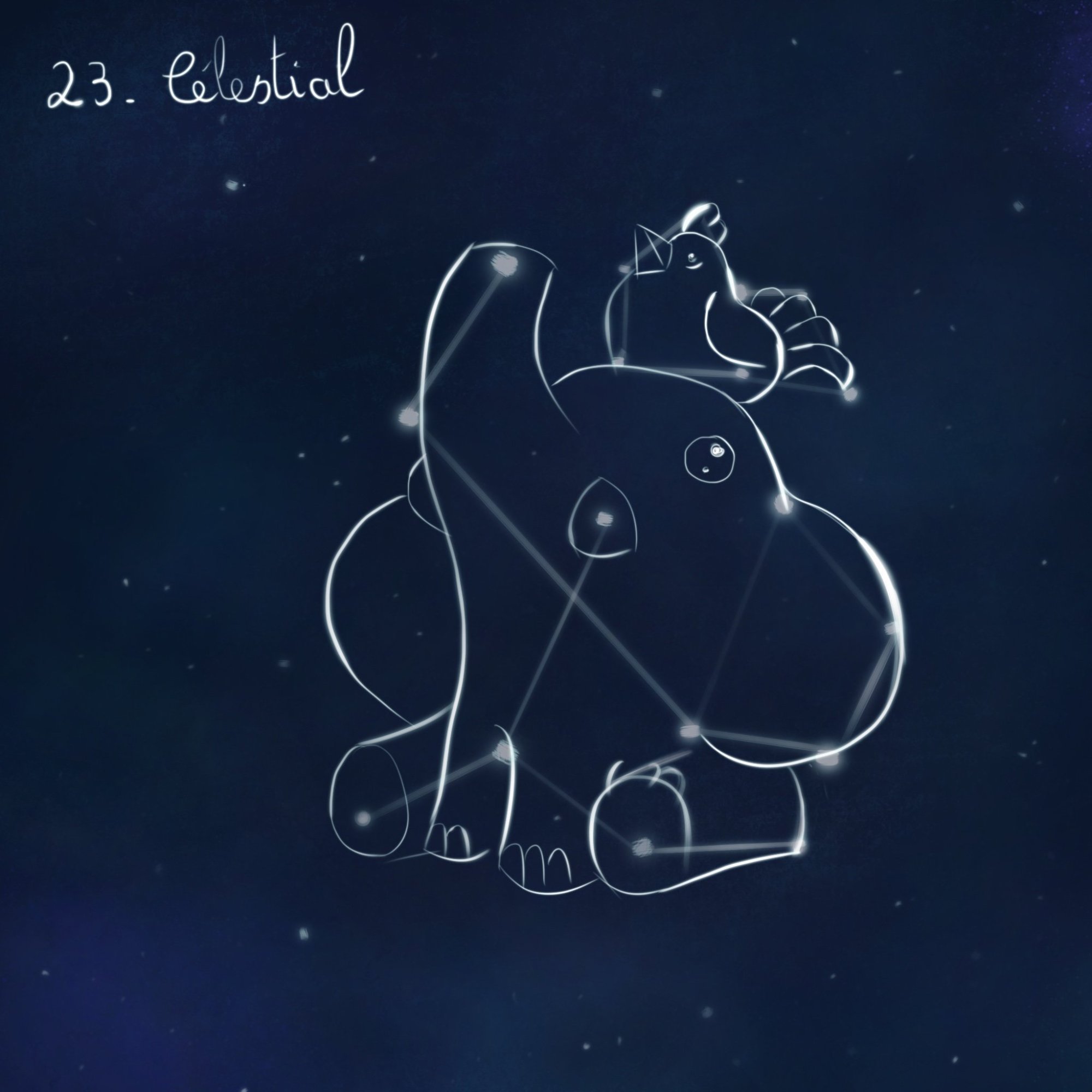 salut tous le monde aujourd'hui je suis partie sur le personnage de Céleste dans Babar 😉 @Archange.St.Michel pas mal du tous, à la fin ça va être chouette @kalys waow ton dragon est superbe @evelynetc'est bien trouvé, la constellation tapette n'est pas loin ?! @Marco c'est jolie, très poétique @ndream très bonne représentation @Emifei très sympas comme idée et belle réalisation @daff c'est pas mal du tout, le grand dieux Anubis, j'aime beaucoup le dessin tu devrais en faire un beau Digital painting ce serait chouette @liwy j'aime bien tes dessins depuis le début et la petite histoire que ça raconte tu me rappel @Baha @jolypunk ah ah le dieux des chats, bien vu @ndream rraaa on a eu la même idée 😁 @alkecesa c'est très jolie, ça me fait penser aux médaillons des mystérieuses cités d'or @Savadja une carte céleste ?! c'est très joli également @Deny le petit prince, c'est très chouette @Agapiton dessin claque, c'est superbe17 points