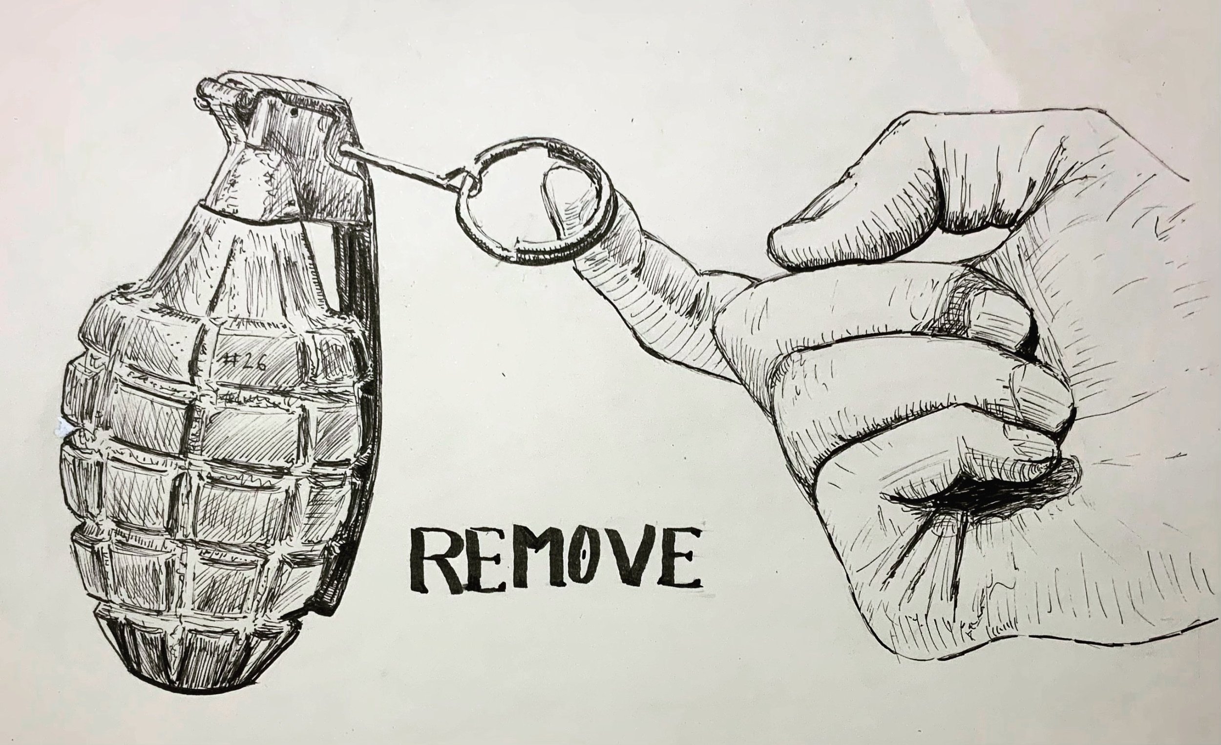 Allez on tiens le bon bout ! Bon sur la fin les mots sont moins faciles quand même. @Emifei très joli ! Le visage ainsi que le noir et rouge sont vraiment bien. @liwy et oui un echarde. C'est bien vu. Vivement le récapitulatif pour revoir cette histoire. @T-rytrès bien réalisé @Samaële vraiment de belles couleurs encore une fois. @Marco elle est super cette grenade. Bien joué @ApostroKe ah oui belle ambiance. Peut être quand faisant le croissant de lune inversé on aurait mieux vu l'effet avec la fau @Archange.St.Michel ahah la pauvre petite !! Pas plus inspiré que ça pour celui-ci.24 points