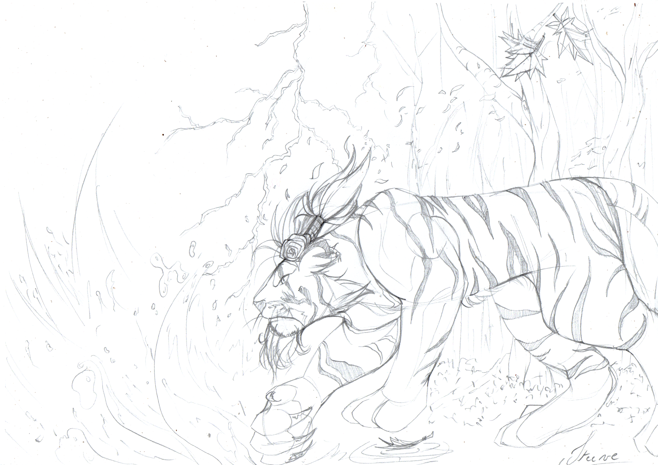 @ndream Très intéressant comme choix et exécution ^^ @Haeresis Très bon choix ! J'adore ^^ Bon, le hasard faisant bien les choses. J'en suis venue aujourd'hui à dessiner une autre bête ^^' Tigre, Tigre ! ton éclair lui. Dans les forêts de la nuit, Quelle main, quel œil immortels. Purent fabriquer ton effrayante symétrie ?17 points