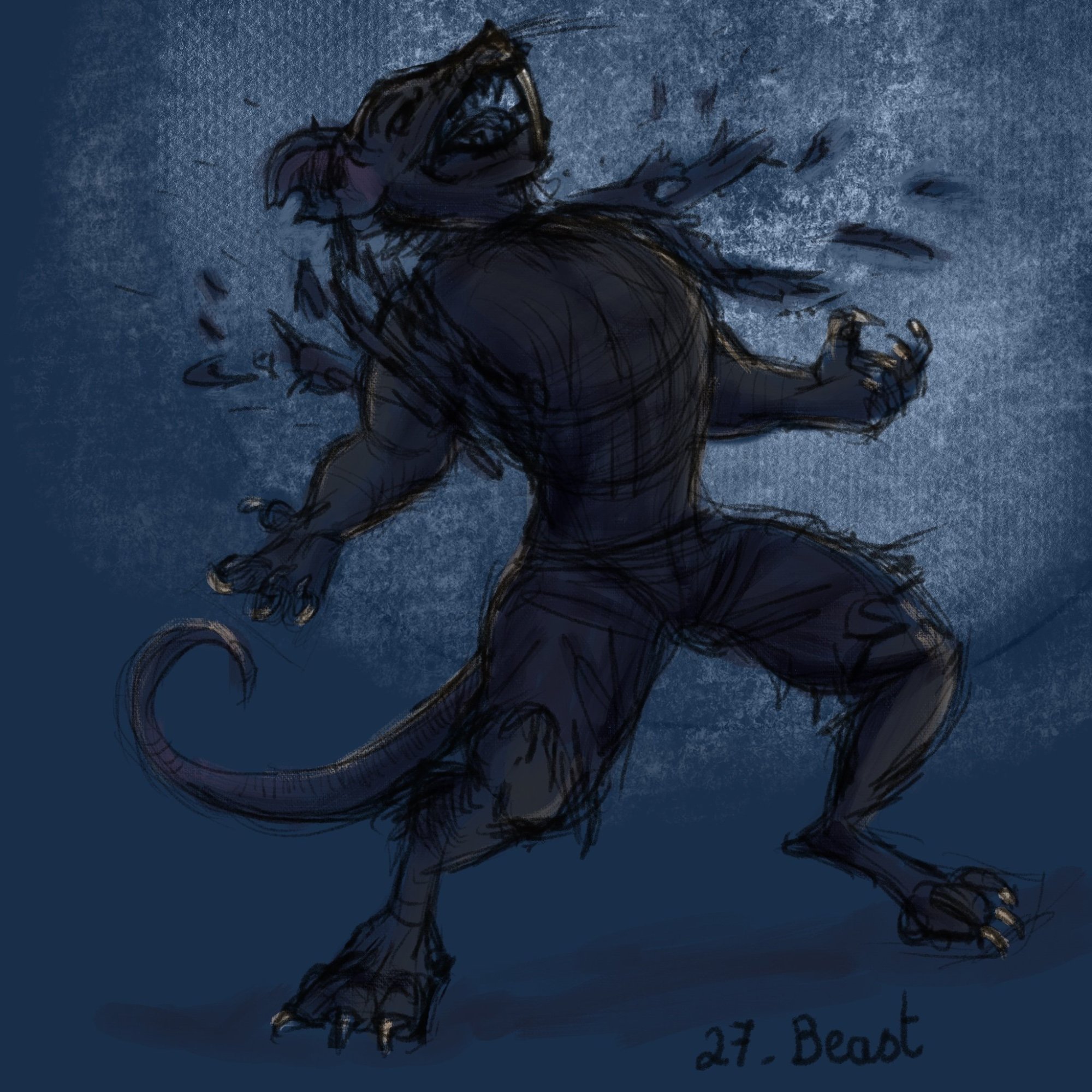 Mais wooow, vous avez fait des dingueries encore, j'ai trop honte de poster mon truc. Pas le temps, boarf, ça devra rester au stade de recherche et croquis premier jet dégueu. Au moins je l'ai fait ! 💪 Est-ce que ça ressemble à une souris (rat) Hulk-Garou ? 😂 J'ai essayé de pas faire mignon pour une fois, c'est dur. J'ai galéré sur le museau, c'est clairement pas ça ! @sunnyAh bah oui, y a lui aussi tiens, top ! @sivayneIl est génial ton dessin, c'est une super idée ! Belle exécution. @SpakfyTrès convaincant, j'aime beaucoup le rendu, les côtes apparentes, les membres rachitiques. Il me fout la troooooouille !11 points
