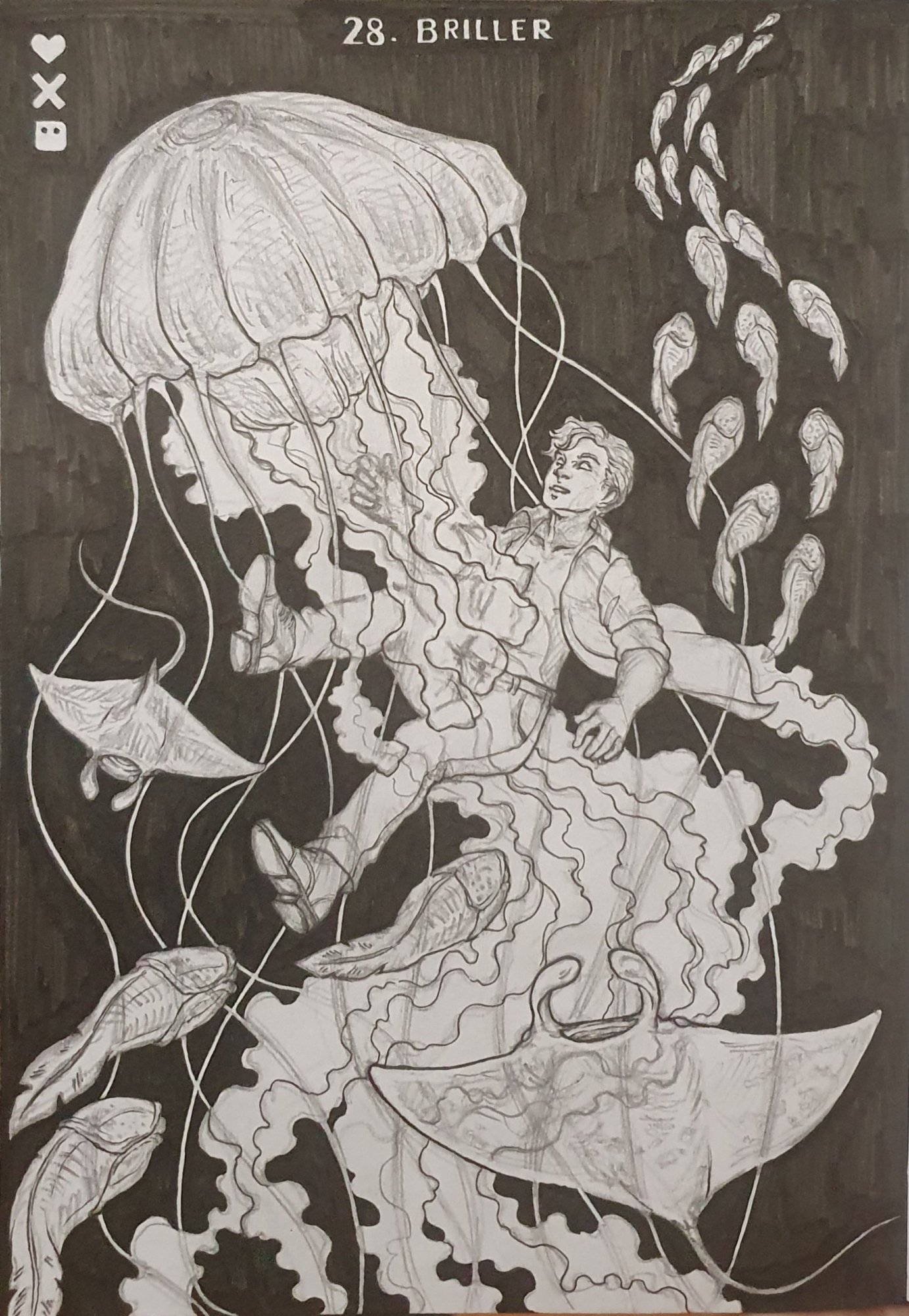 Bonsoir ! Bon... C'était Aaaabsolument pas ce que je devais proposer pour le thème du jour. J'avais plus en tête quelque chose dans le style de notre chère @alkecesa. ça sera finalement juste quelques doodles réalisés pour me faire plaisir et me chauffer un peu avant d'attaquer ma scène du jour. MAIS. Gros mal de ventre, obligée de me réfugier au chaud sous la couette, en panne d'énergie. Peut-être qu'avec l'heure qu'on va gagner cette nuit, j'aurai le temps et le courage de faire 2 dessins demain. 😅 Bon après, les doodles sont plus ou moins dans le thème quand même, c'était pas anodin. Un bonbon, de la gelée, du verre, tout ça, ça brille et ça scintille un peu (excusez la lumière pas ouf). @krokcioleIls ont un air de champignons bling bling ! 😂 @storiartPoussière d'étoiles, youhou ! Très mignonne cette scène. @loukiLe retour ! Encore une scène pleine de magie pour les yeux, dans sa simplicité, quel régal ! Tu as de la chance, il m'est impossible de te haïr même avec toute la volonté du monde, mais cette chansonnette... Espérons qu'elle ne me restera pas en tête pendant 3 jours ! 😂 @HatsuDes champiiiiiis, ouiiiii ! Très apaisante cette scène nocturne.7 points