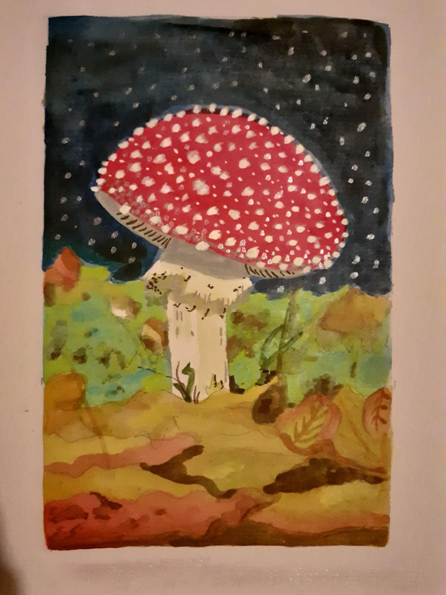 Hello à toustes! =D J'ai pas eu le temps ce weekend... du coup j'ai pris une gouache que jai faite ya quelques jhours et jai ajouté de l'aquarelle pailletée.... *Sparkle* Voila voila... on rentabilise le temps xDD En mode champi automne vibes en ce moment... xD @evelynet haha bonne idée!^^ @sivaynemagnifique! jai vu cette série mais je ne me rappelle pas de celui la xD faudrait que je reregarde!^^ @yurinomaiwow! magnifique ❤️ c'est de laquarelle? bravo!9 points