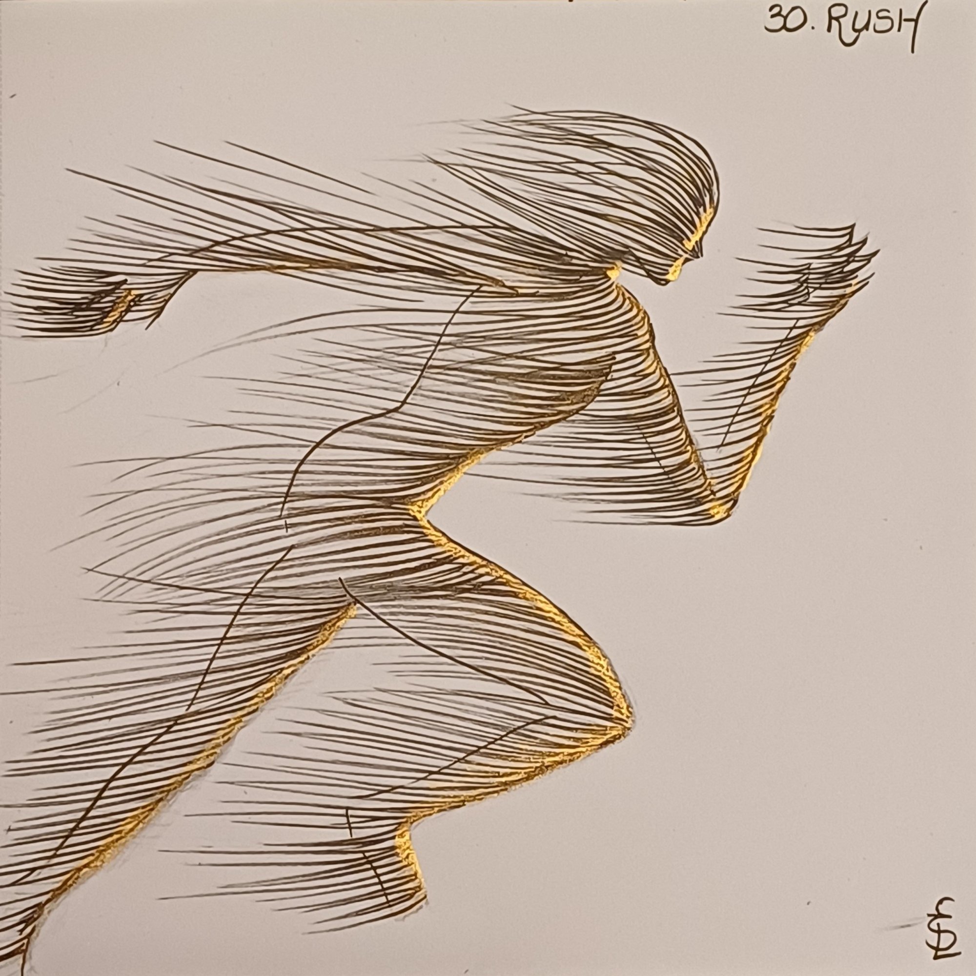 Coucou les amis!! Je suis rentrée!! Je posterai mon dessin d'hier juste après, mais là, je suis trop contente de mon expérimentation du jour, je commence donc par elle... mais d'abord, parlons un peu de vous!! @daff déterminé ton lapinou!! Vite vite! @ApostroKe rho punaise, et c'est là qu'il s'est planté de porte clés!! @T-ry très sympa, on sent bien le rush du matin... ça ne me manque pas, tiens! @ndreamrha la nostalgie!! @sagi le temps qui s'écoule, plus ou moins rapidement en fonction du moment, mais inexorablement... très jolie symbolique! @jolypunkon sent la fin!! Ou c'est parce que tu te réserve pour demain? En tout cas, ça colle au sujet! @Jeepy ah ben oui, logique!! Super, encore une fois! @SamaëleMais que c'est beau! Et ça réchauffe cette journée bien automnale! @stefouben t'as mis tout ce qu'on aime aussi!! Et bon, ouais, le miel, ça marcherait (presque) pour moi aussi.... @fabio mais nooooooooooon, excellent!! @Marcocouuuuuuuuuuuuurs!!!! pas inspiré peut être, mais efficace! Aujourd'hui, comme j'avais deux dessins à faire (hier j'étais sur la route tout la sainte journée lalalalala... donc pas pu dessiné.... ) je me suis lancée dans une petite expérimentation pour le plaisir... c'est un peu mon état d'esprit ce matin!! Mais j'ai couru vers la lumière et tout va bien, je vais pouvoir me poser... Demain, pour mon dernier dessin d'Inktober, je vais me lâcher!! Si tout marche comme prévu!22 points